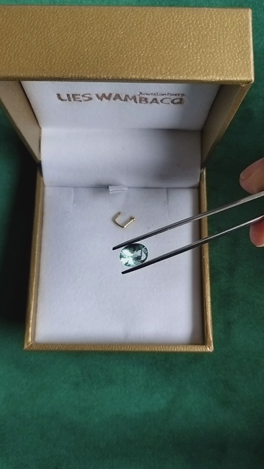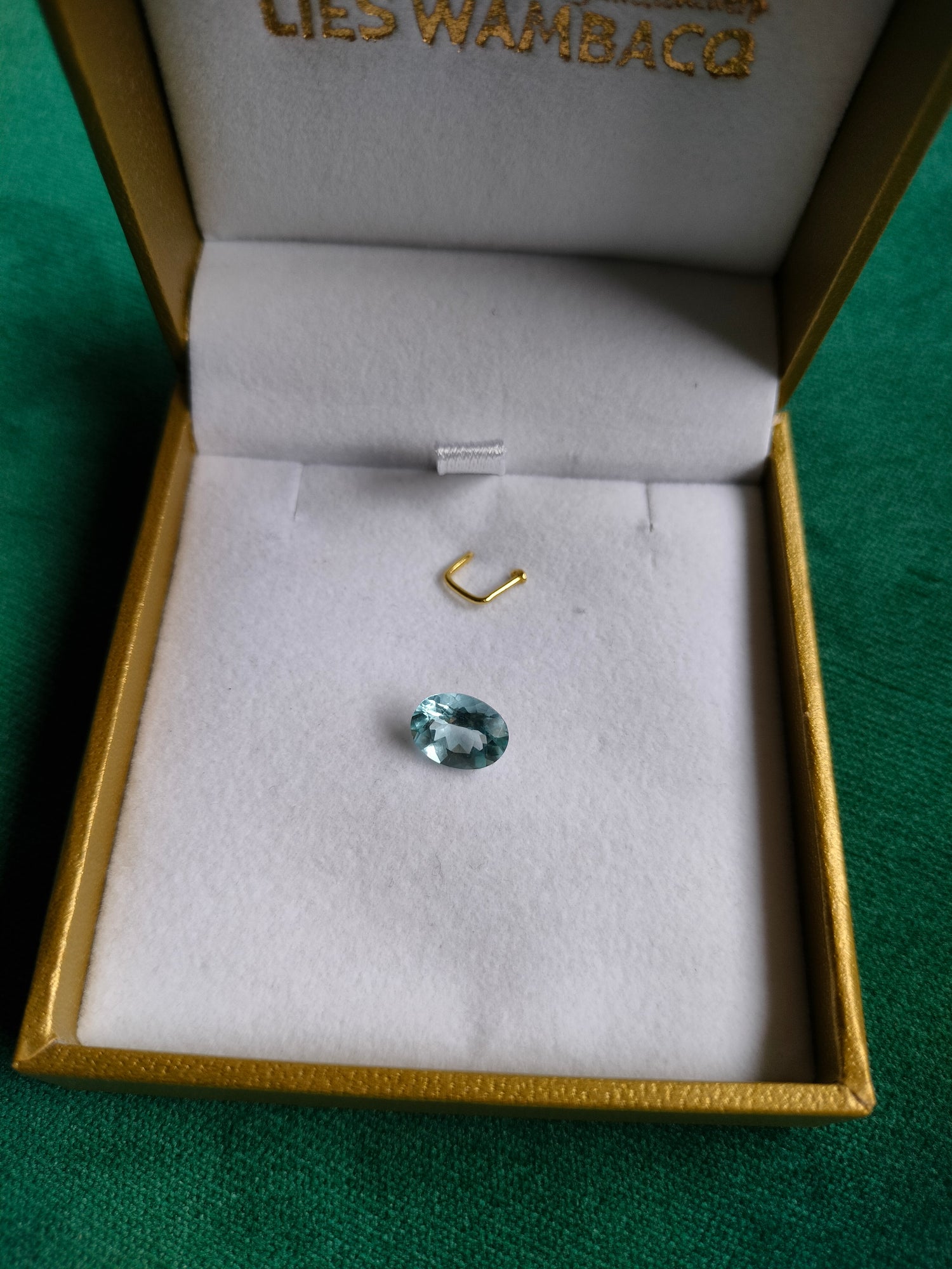 Deze aquamarijn kan aangekocht worden los, maar kan ook gekozen worden in mijn atelier om er een juweel rond te maken. Een aquamarijn is een harde edelsteen perfect voor ringen, maar deze kan ook in een hanger gebruikt worden.