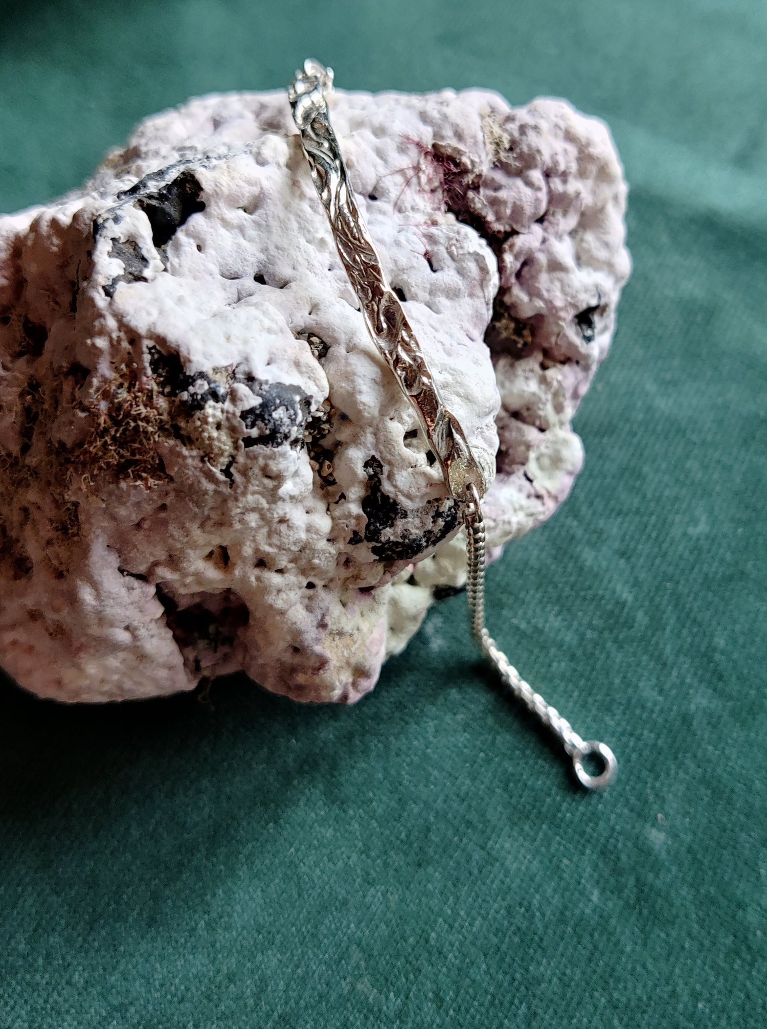 Afmetingen van de bar is 3mm op 5,5 cm. De armband sluit mooi met een ketting en slotje.