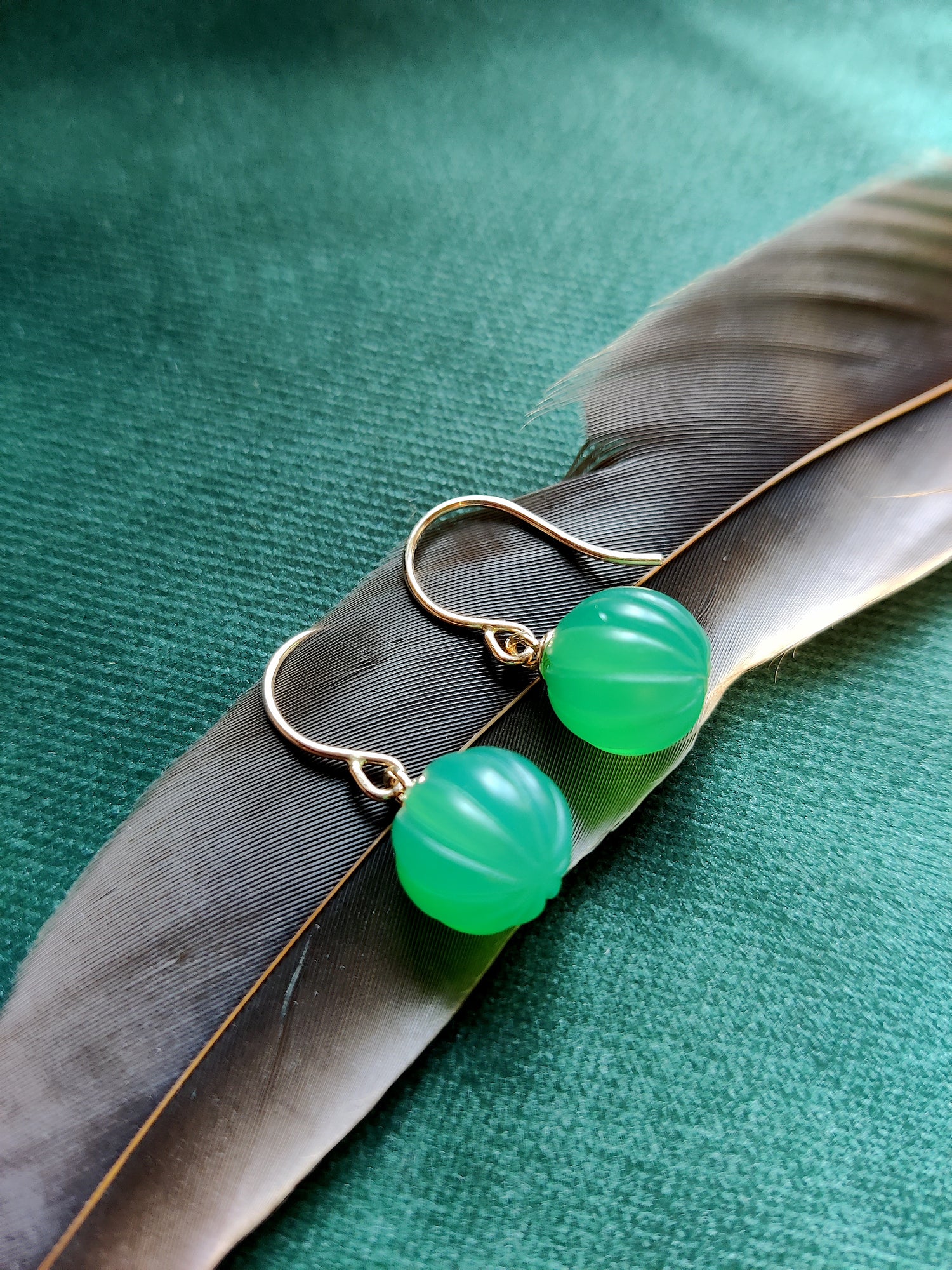 Oorbellen in 14k geel goud met groene Onyx - Pompoen
