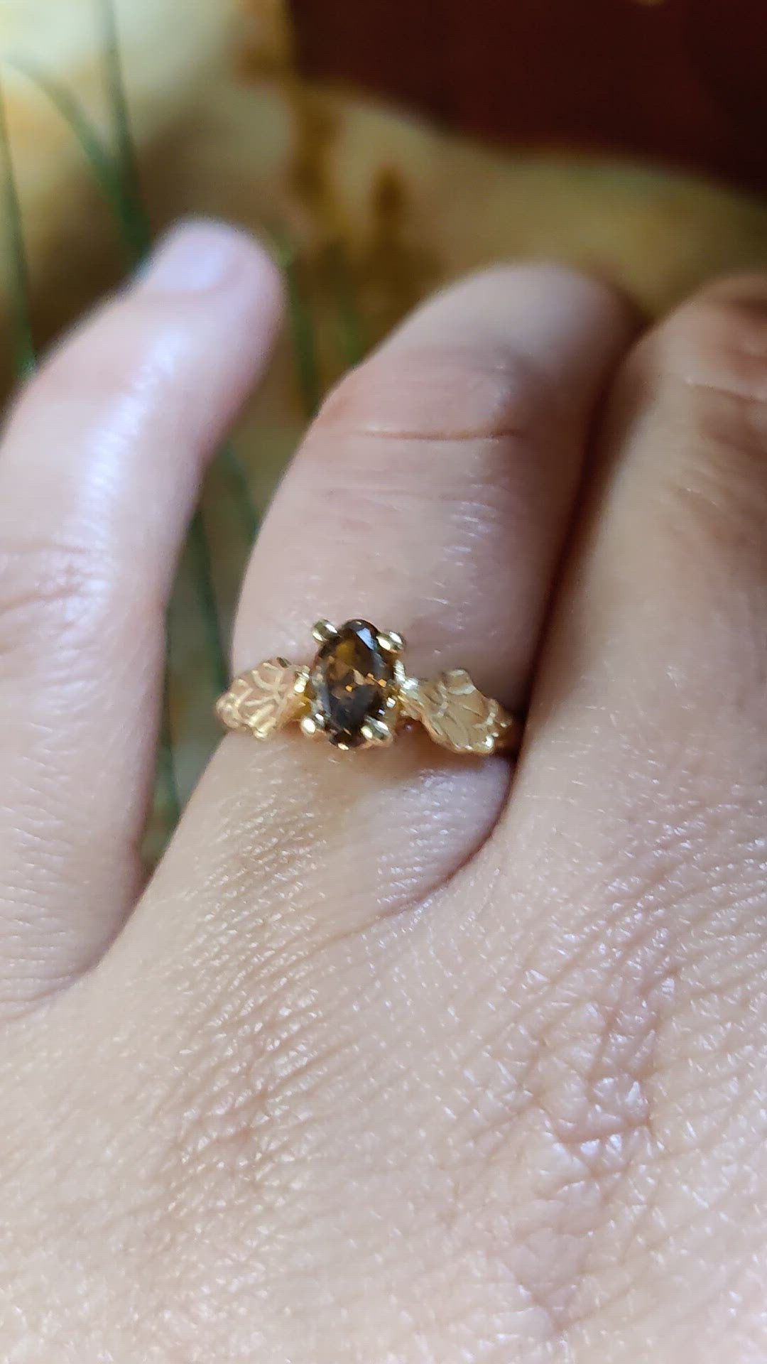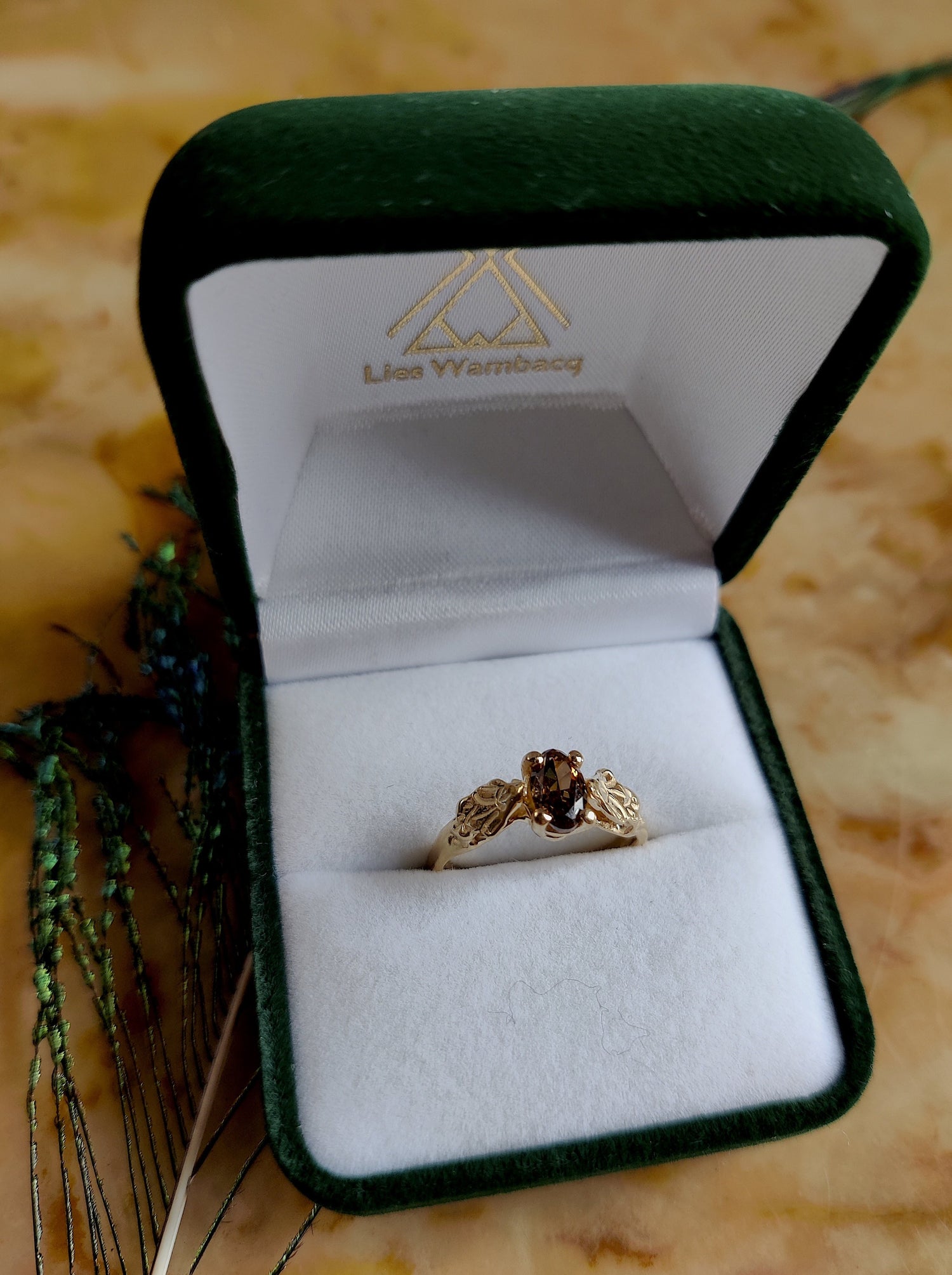 18k geel gouden ring met ovalen diamant oranje bruin 0,62ctct