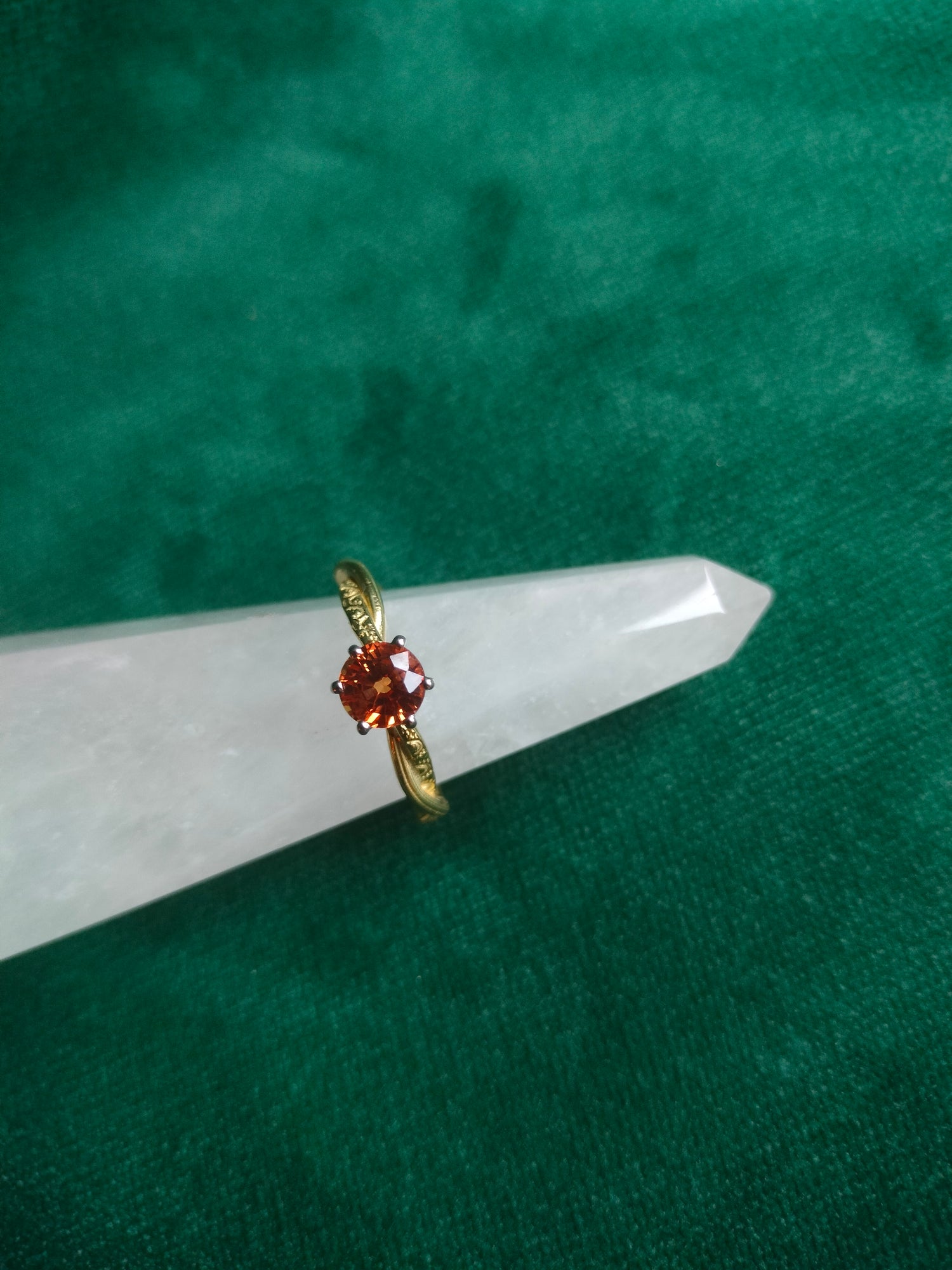18k geel gouden ring met ronde rode saffier van 5,5 mm (1,06ct).