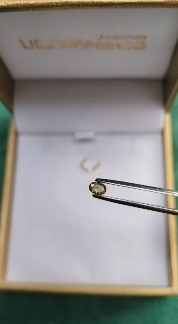 Deze ovale diamant is een natuurlijke edelsteen in een warm geel oranje. Je kan deze steen gaan gebruiken voor in een ring, hanger, armband,... Het oranje blend in met geel goud, maar is ook heel leuk in rood of wit goud.
