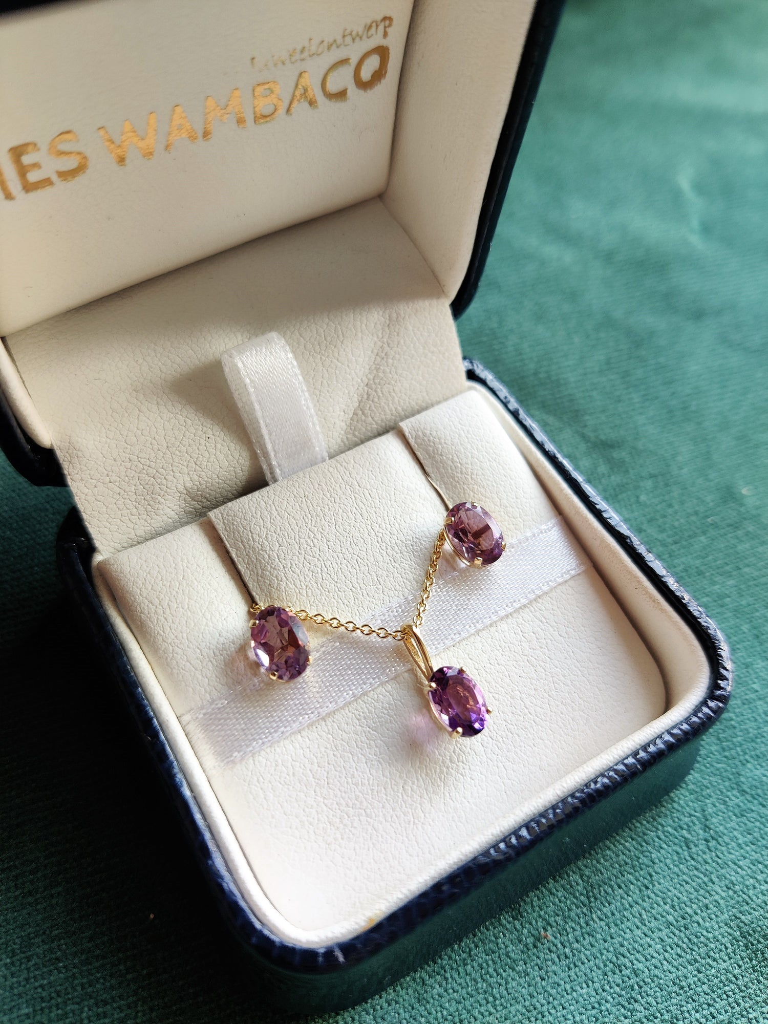Hanger in 14k geel goud met ovale amethist 7x5 mm