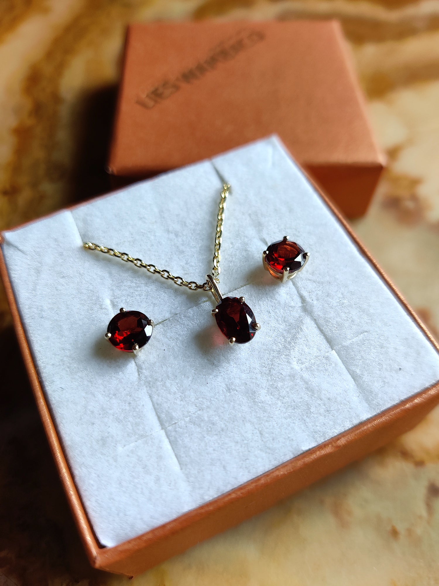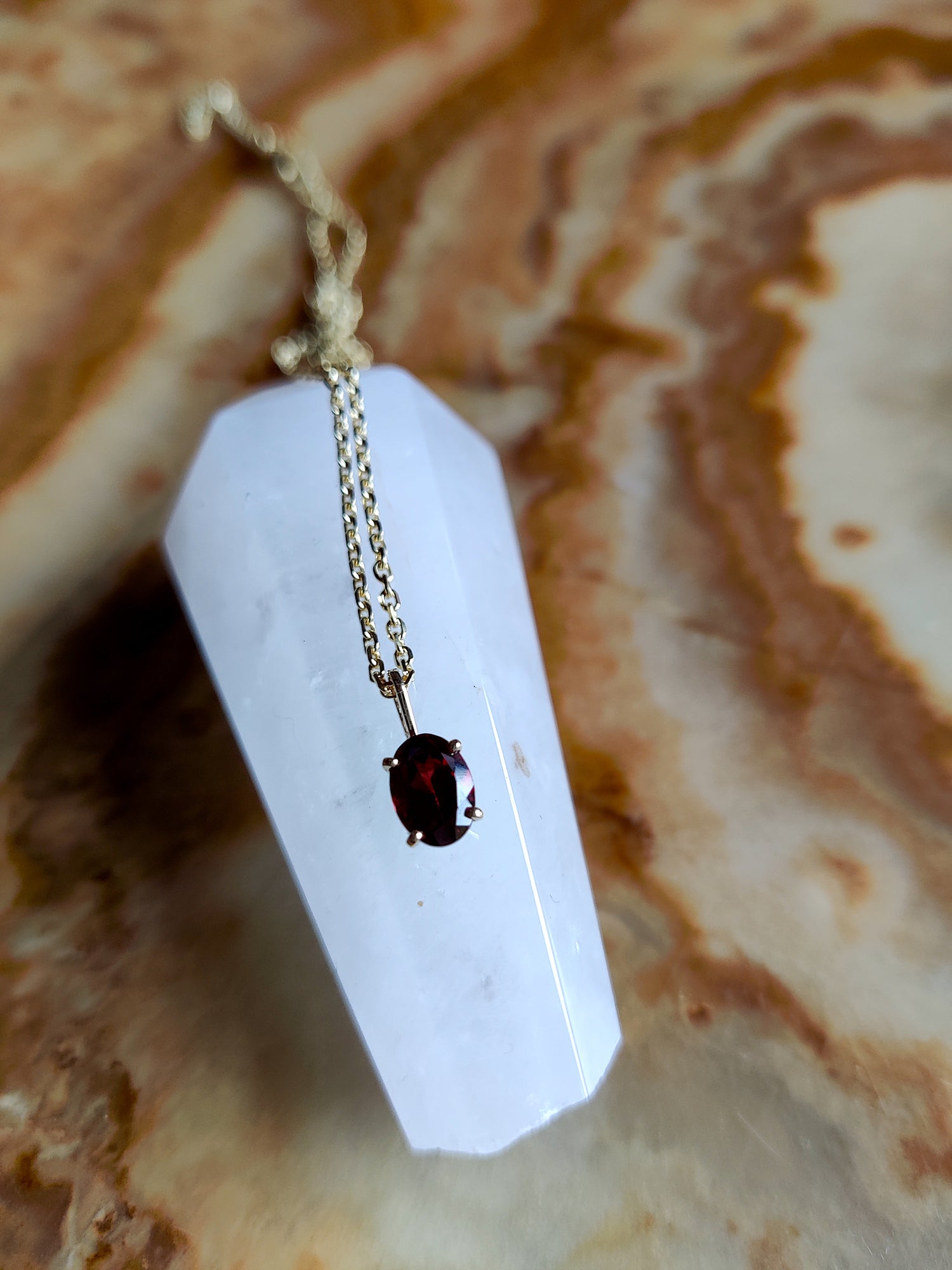 Hanger in 14k geel goud met ovale granaat 7 x 5 mm