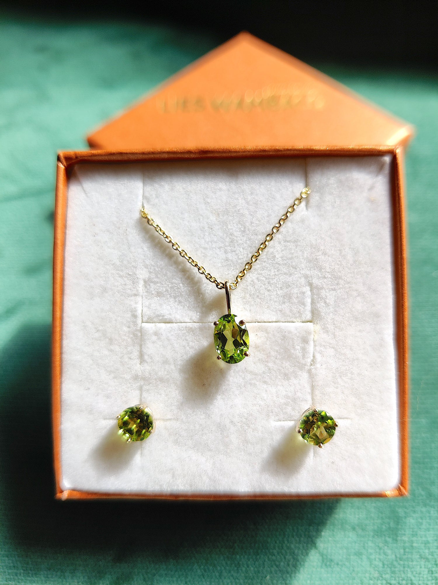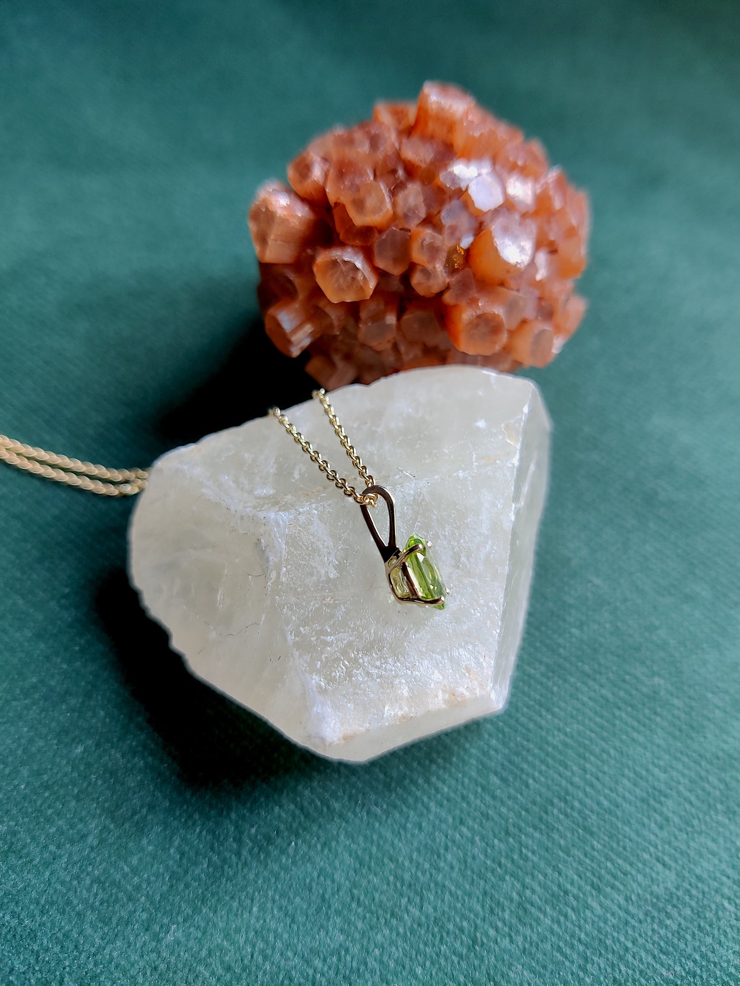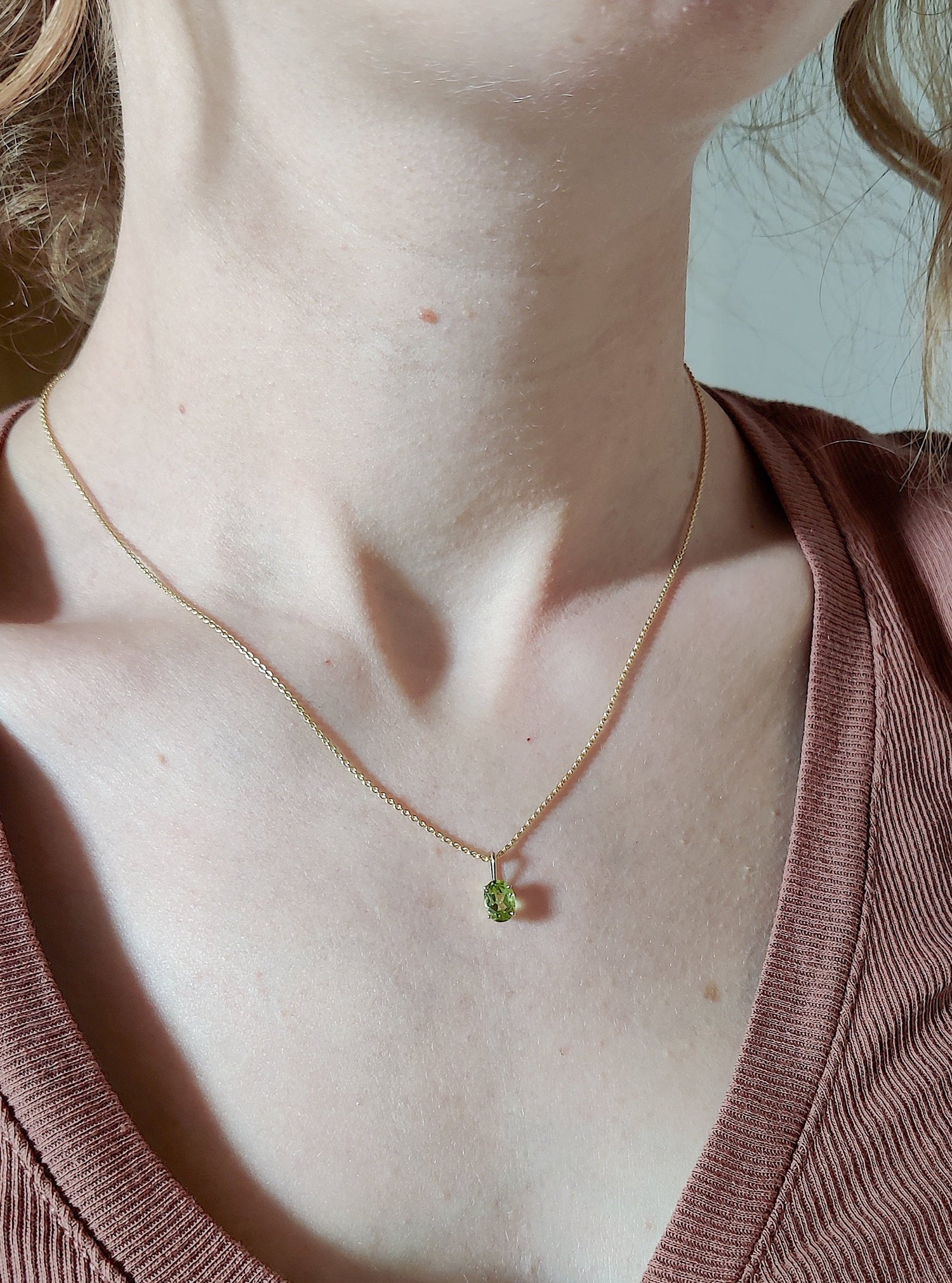 Hanger in 14k geel goud met ovale peridoot 7x 5 mm