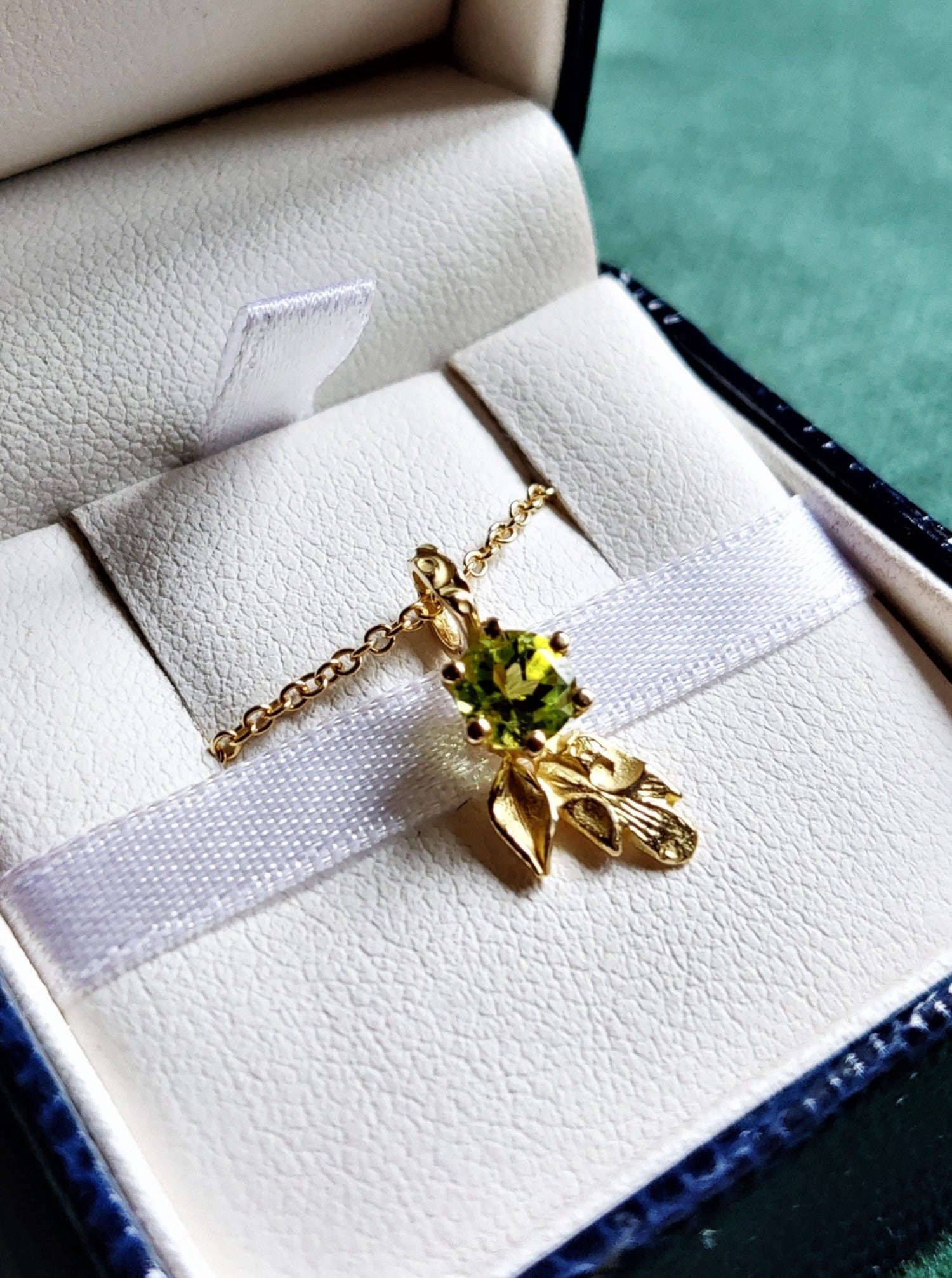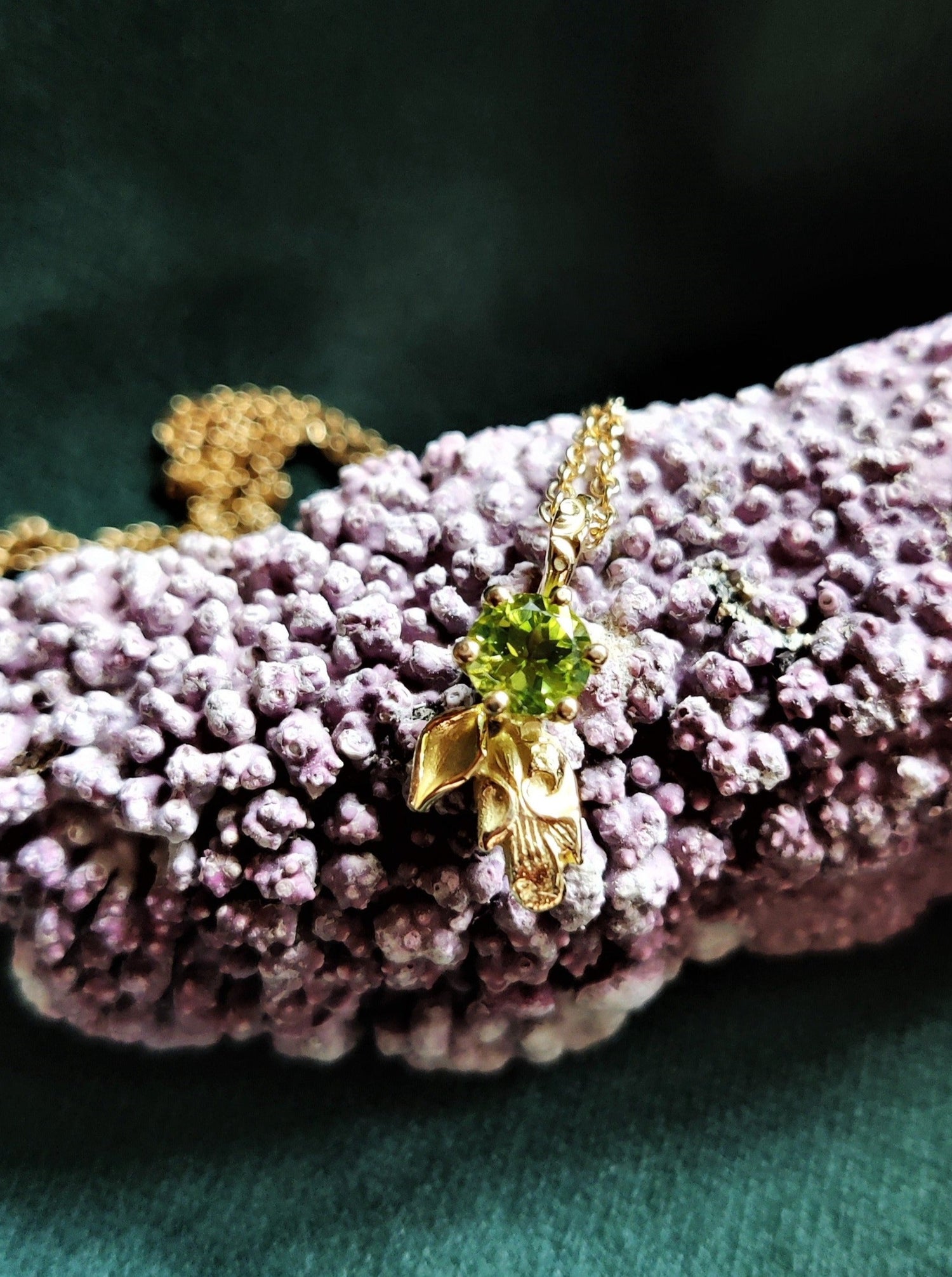 Hanger in 18k geel goud met ronde groene peridot van 5,5 mm
