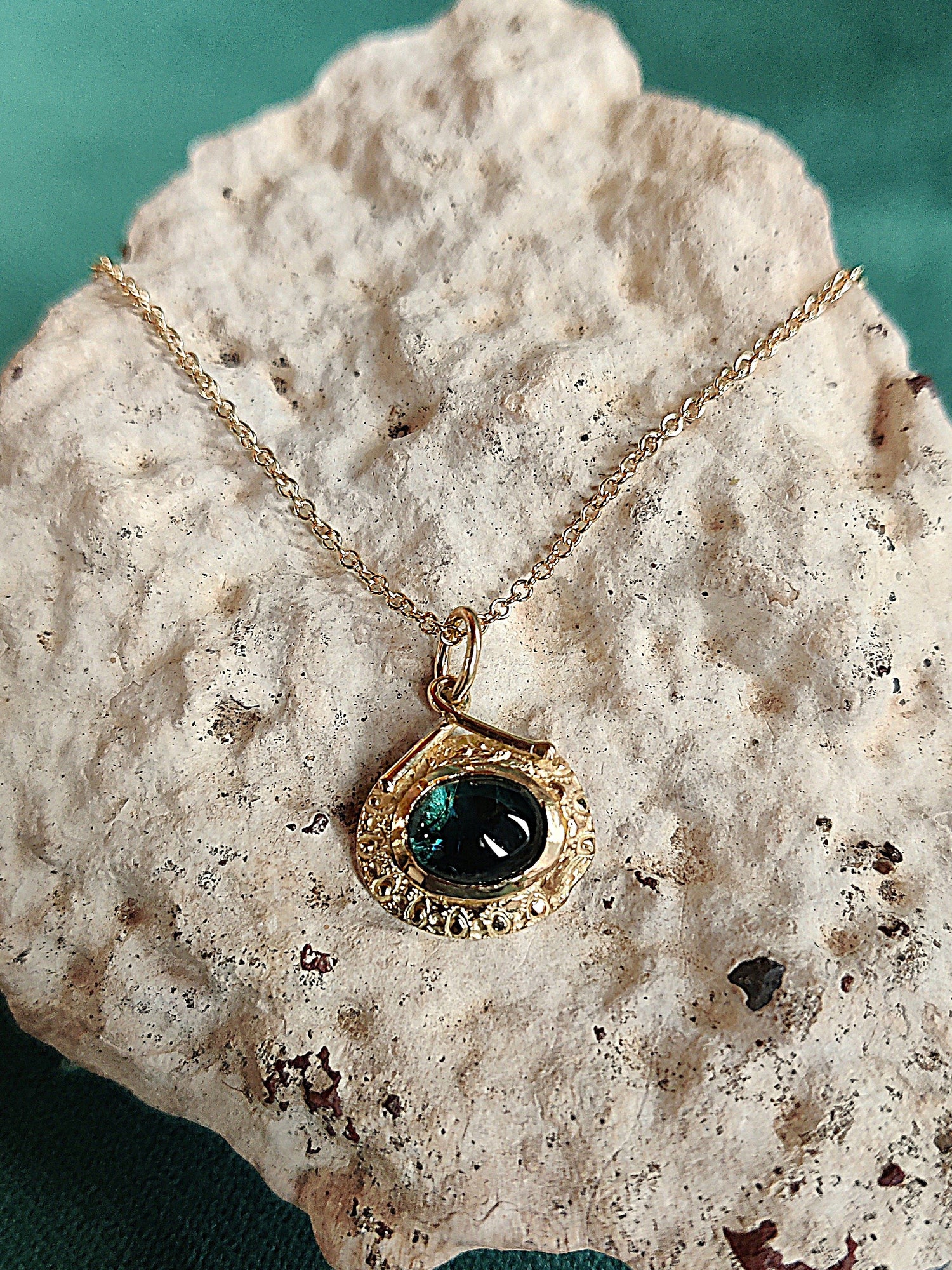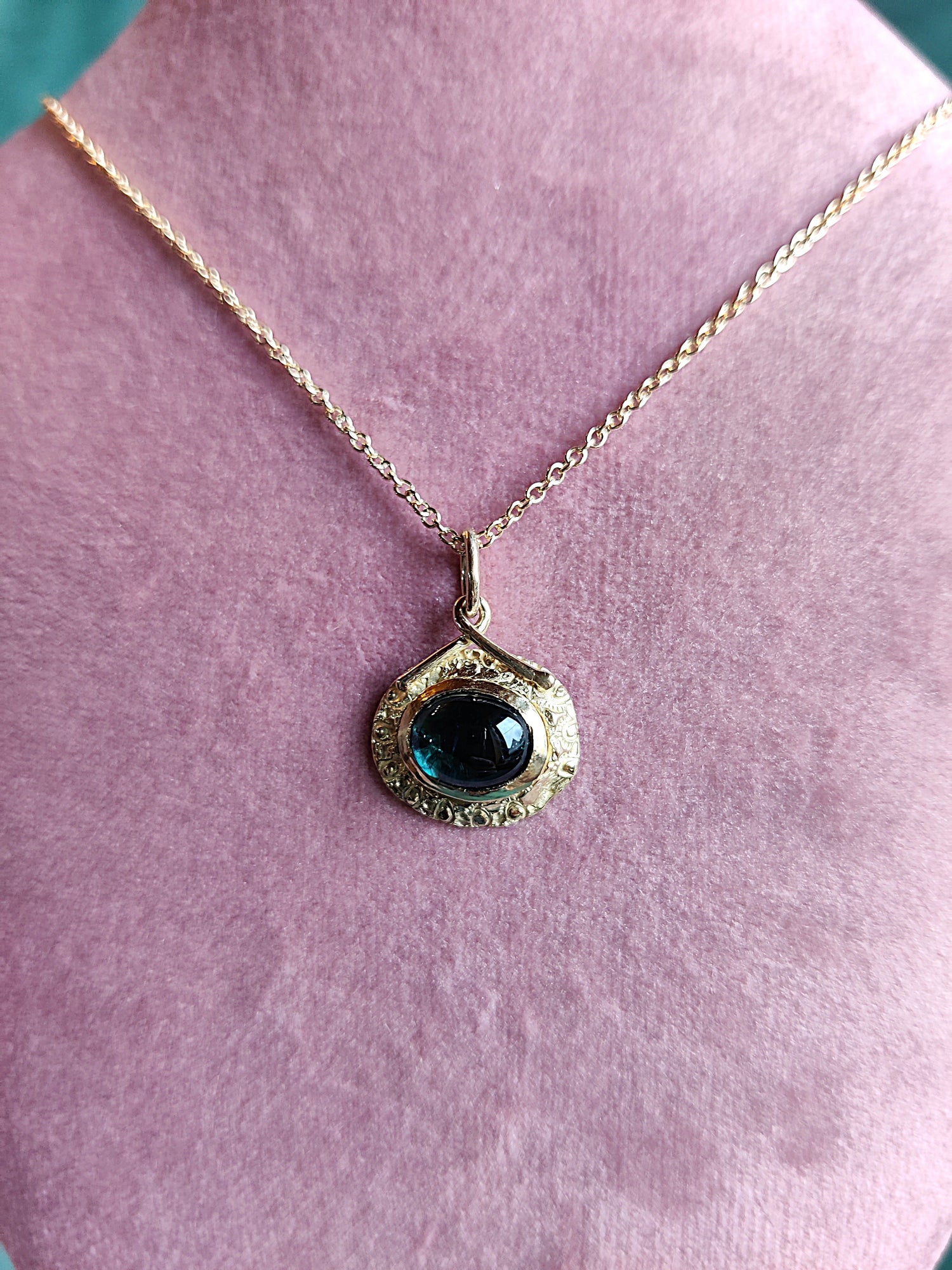 Hanger in 18 karaat geel goud met een prachtige indigoliet ovale toermalijn cabochon (9x7mm).