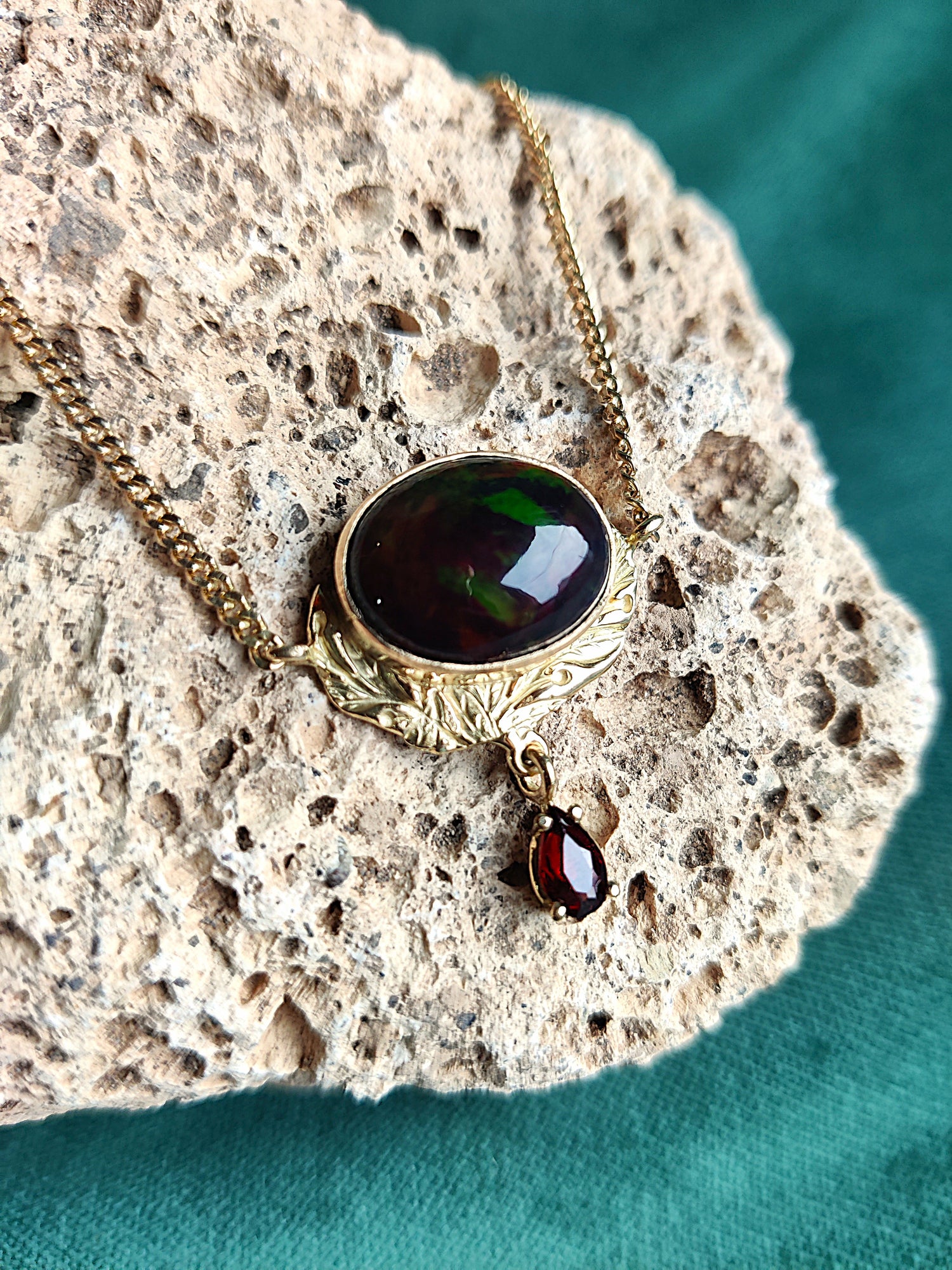 Ketting in 18K geel goud met opaal en granaat: Cecile