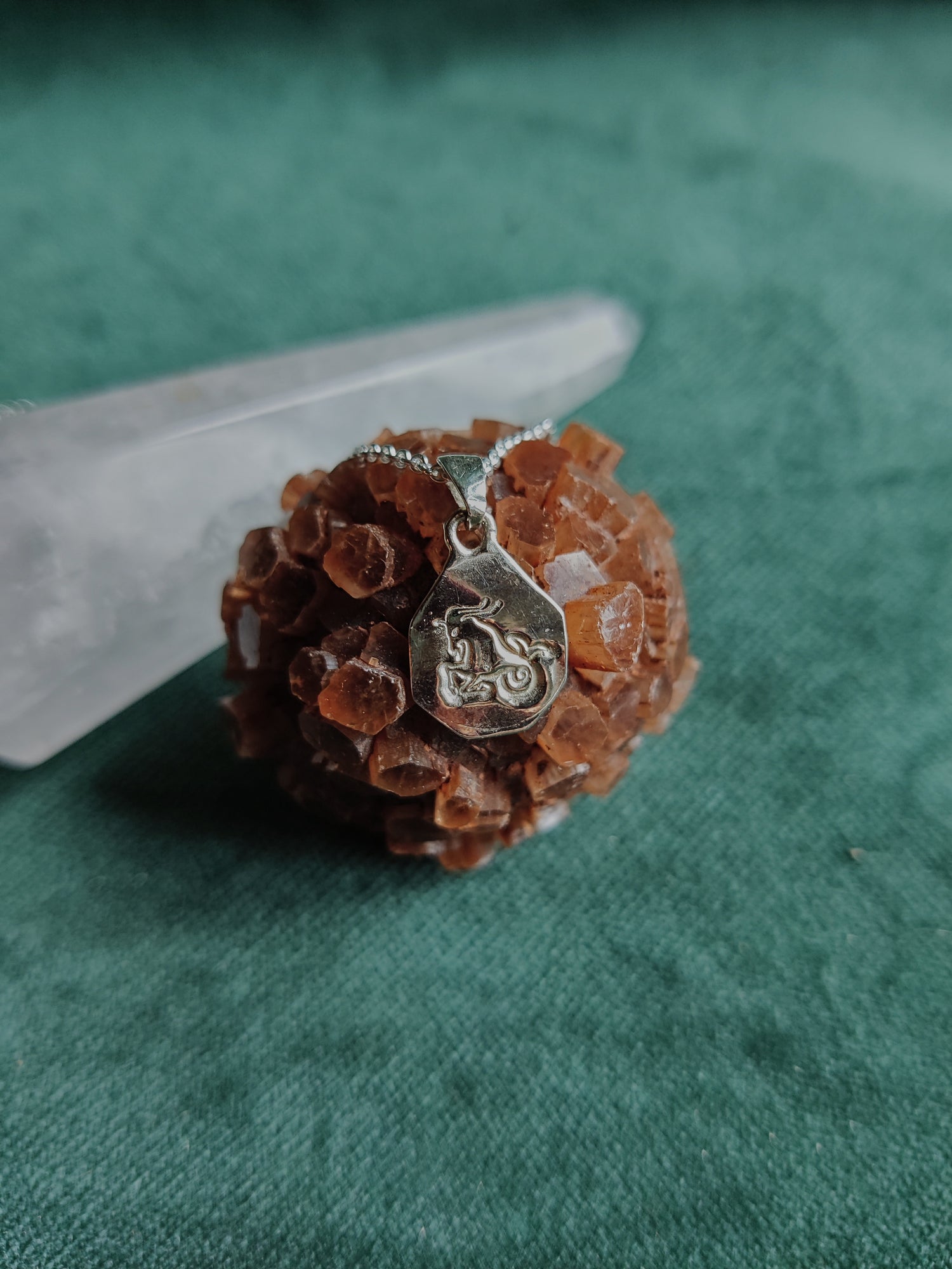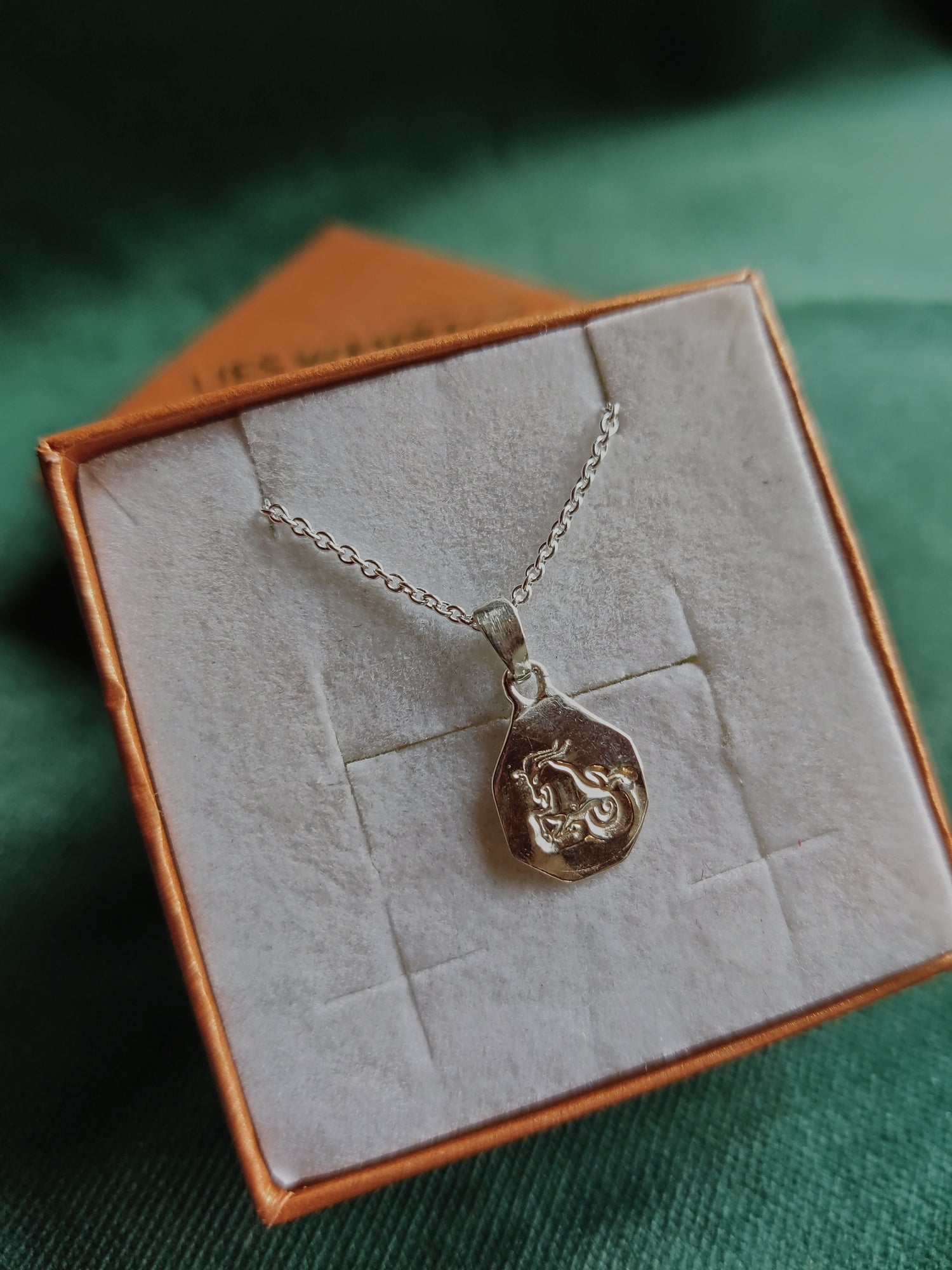 Ketting in zilver met afdruk van het sterrenbeeld steenbok.