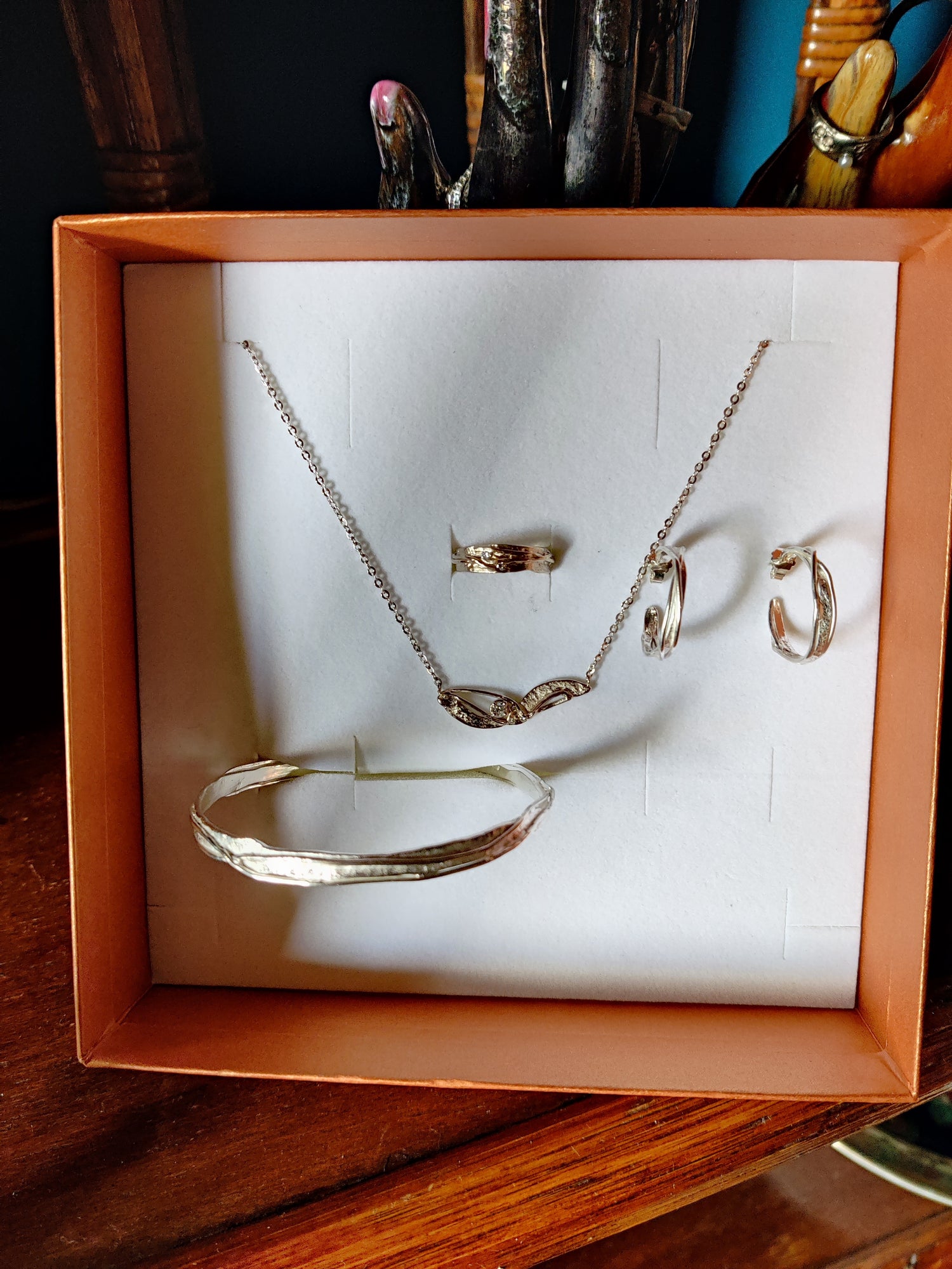 Armband en oorbellen zijn gemaakt in sterling zilver.