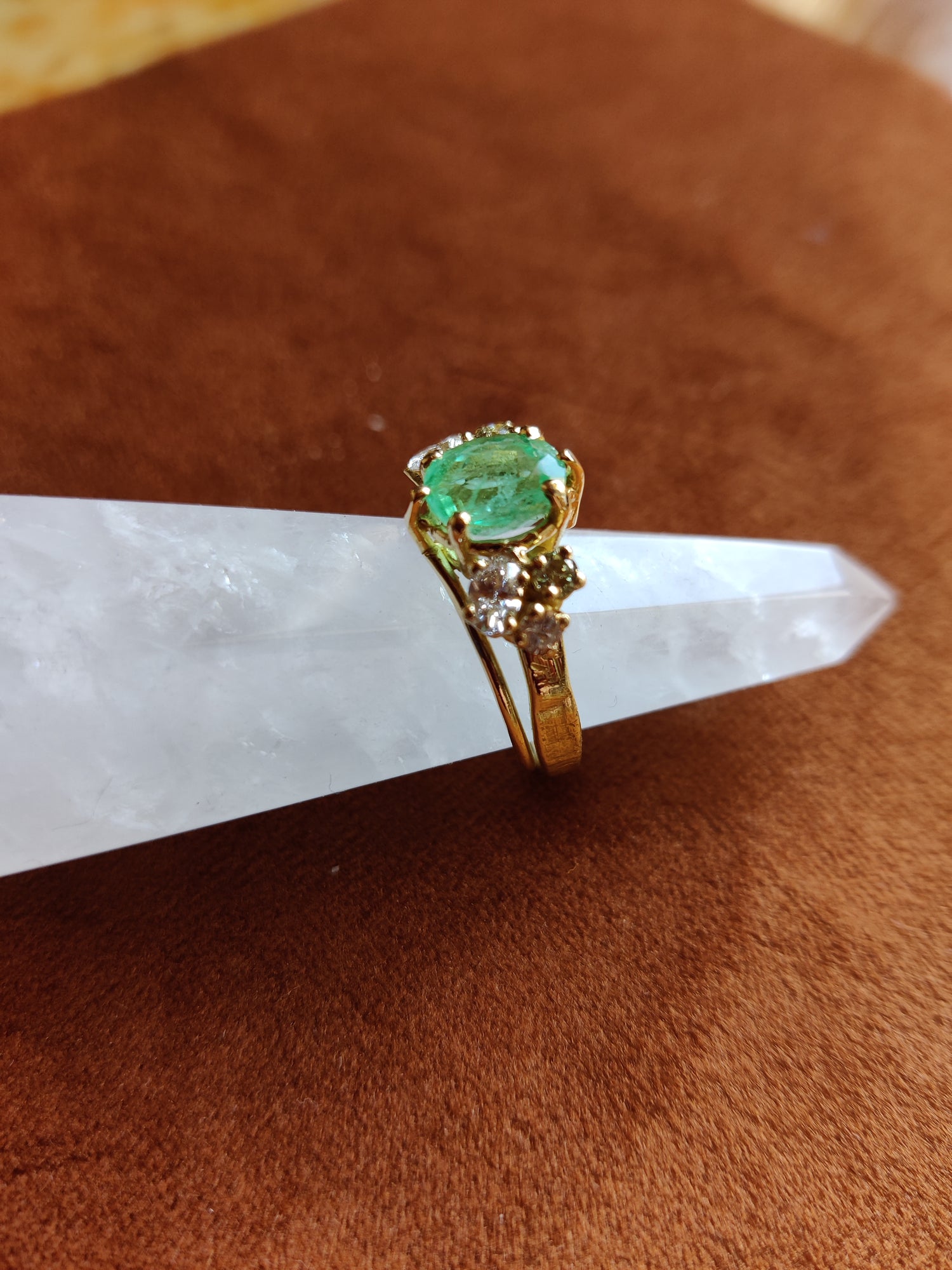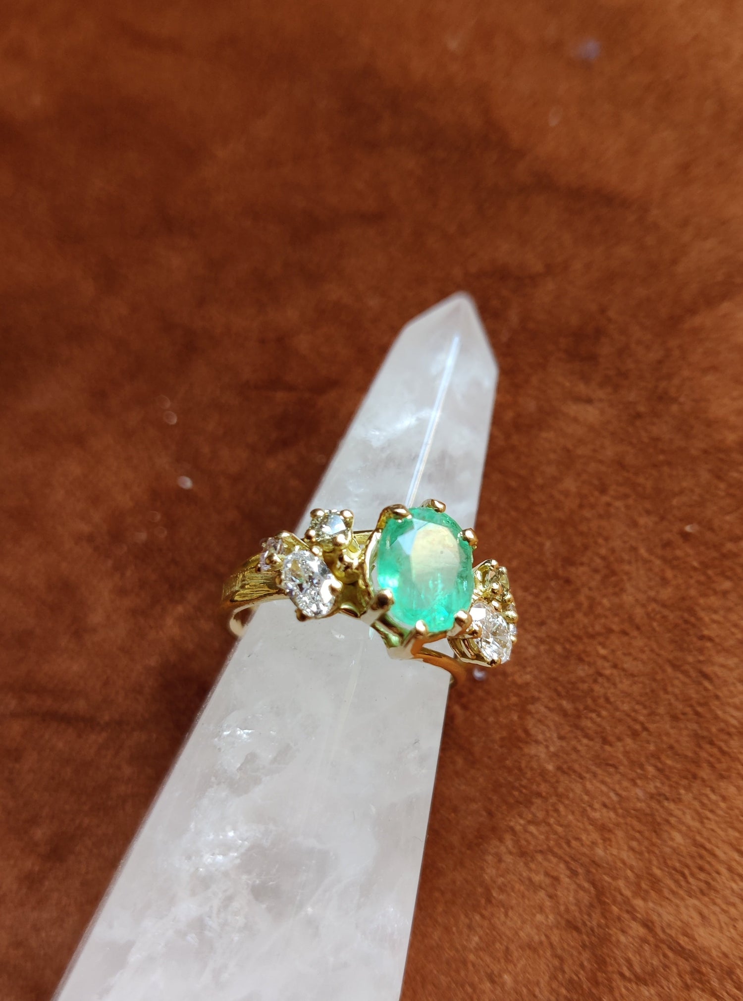 Ring in 18k geel goud met smaragd en diamant: Op maat gemaakt