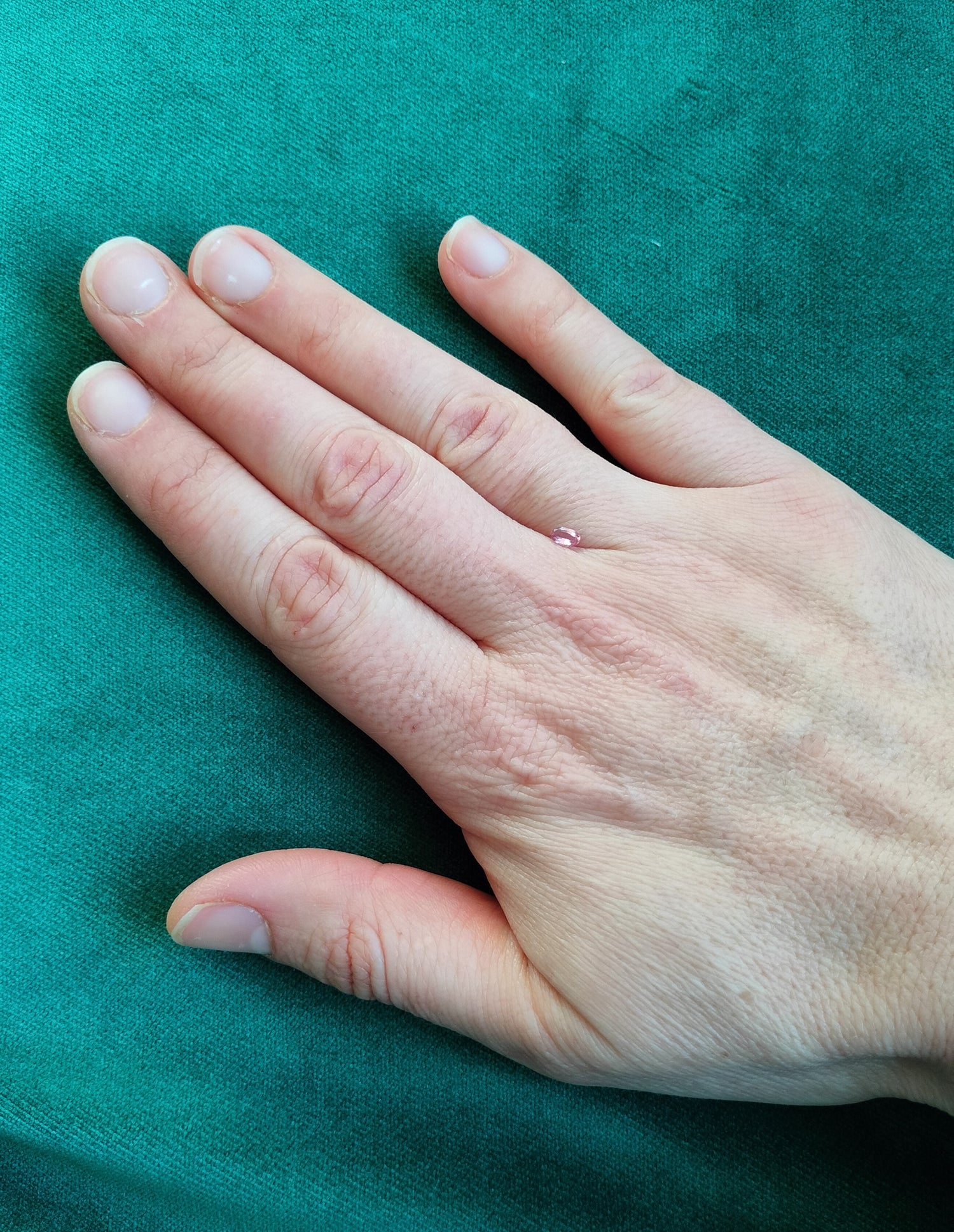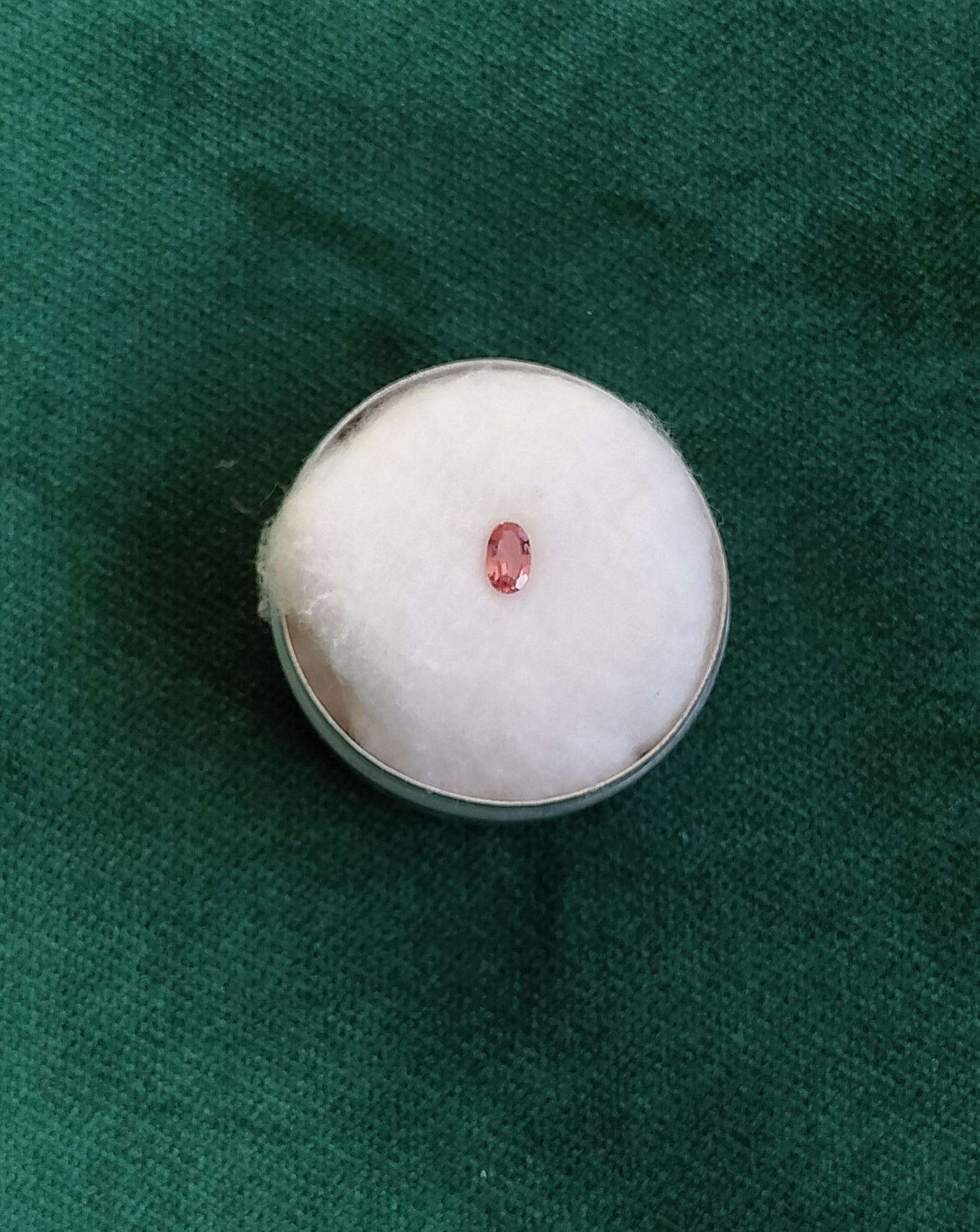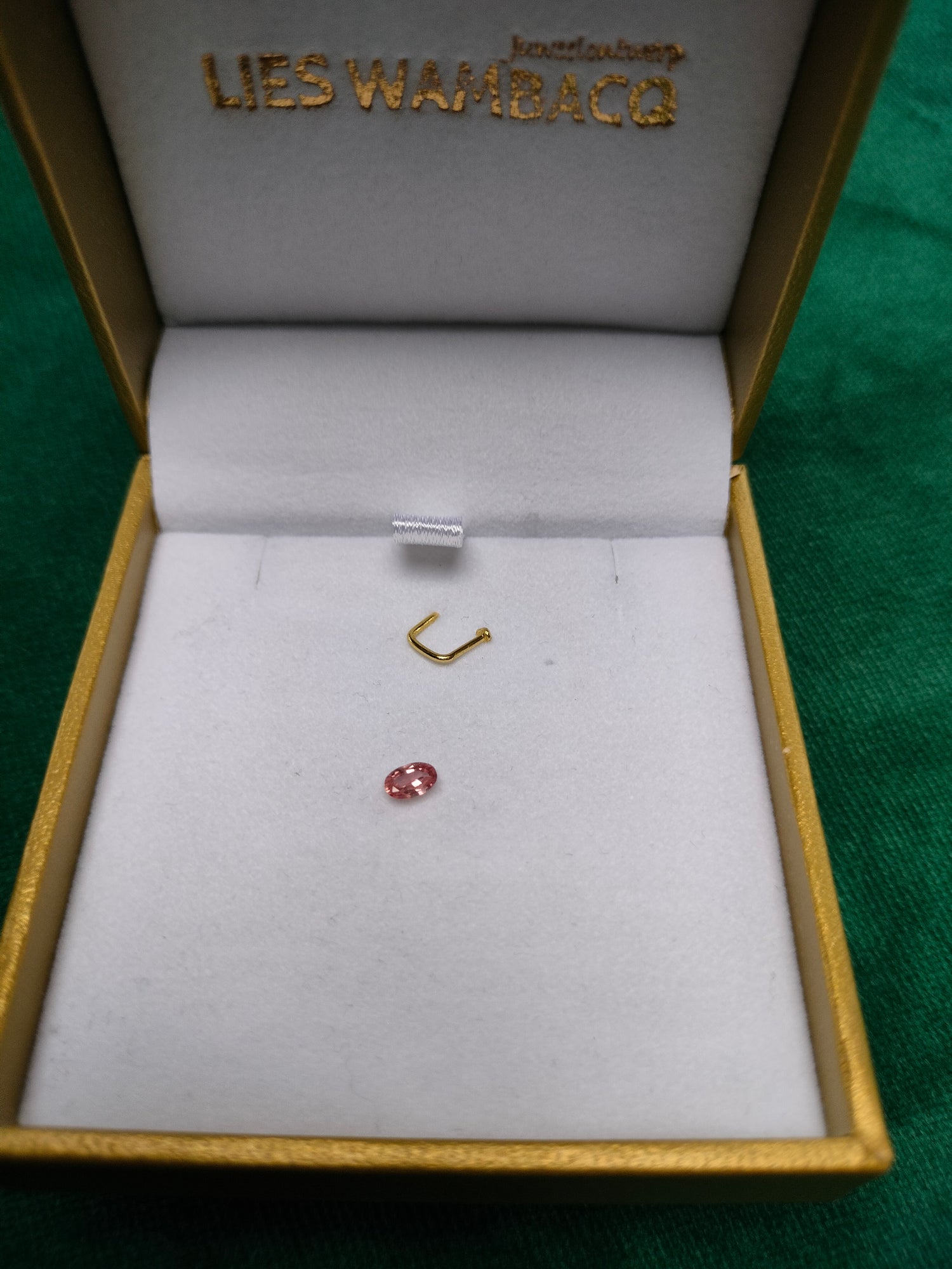 Licht roze saffier: 3 x 5 mm, 0,32ct.