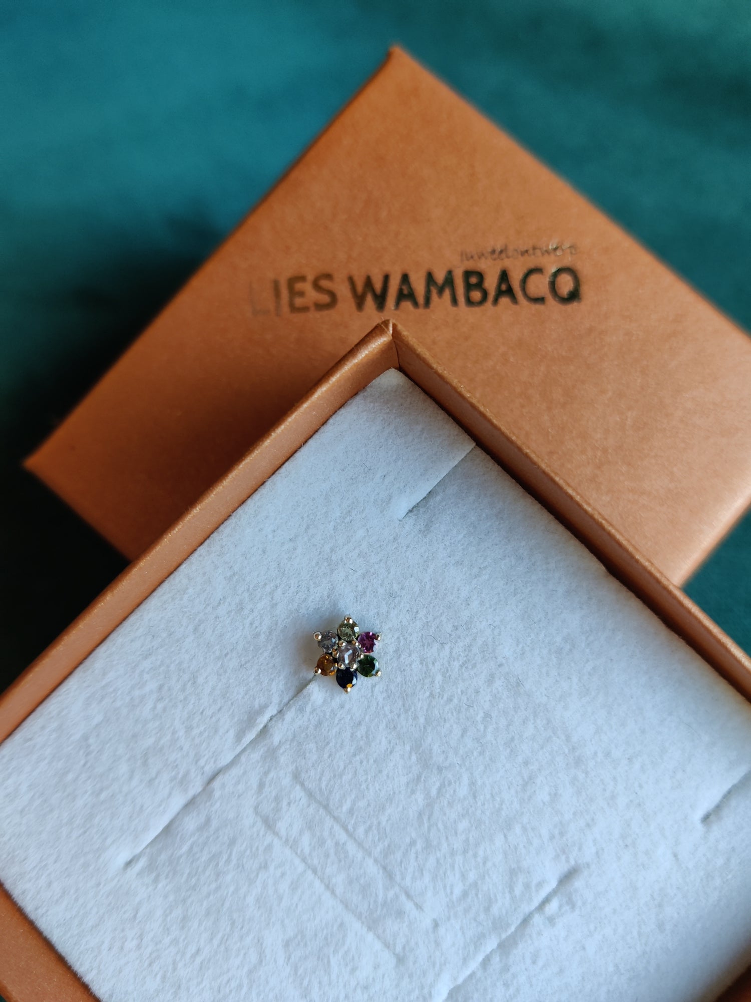 Losse oorbel of neuspiercing in 14k geelgoud met verschillende edelstenen - Iris