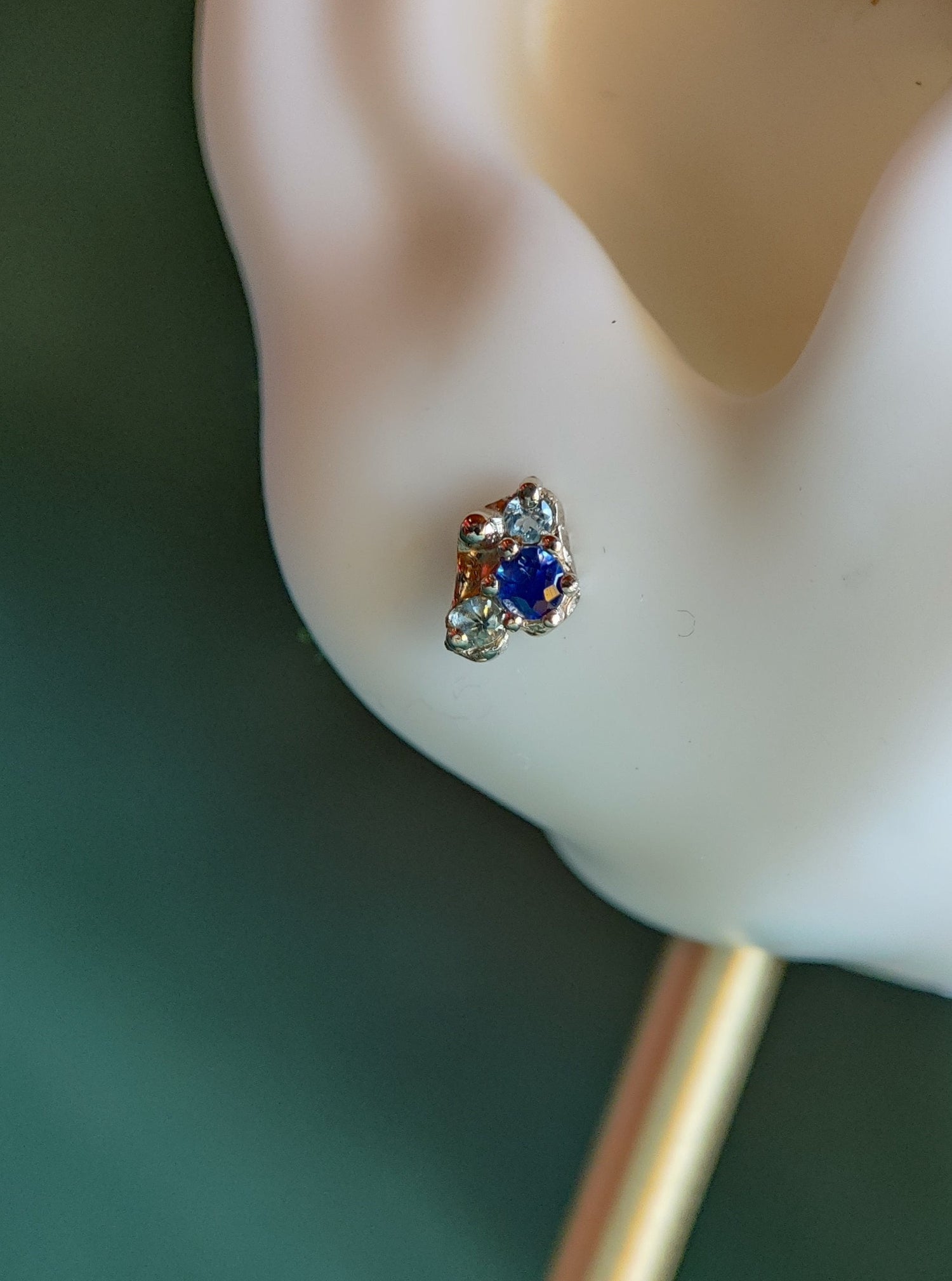 Losse oorbel of neuspiercing in 18k wit goud met saffier en aquamarijn: Rosalie