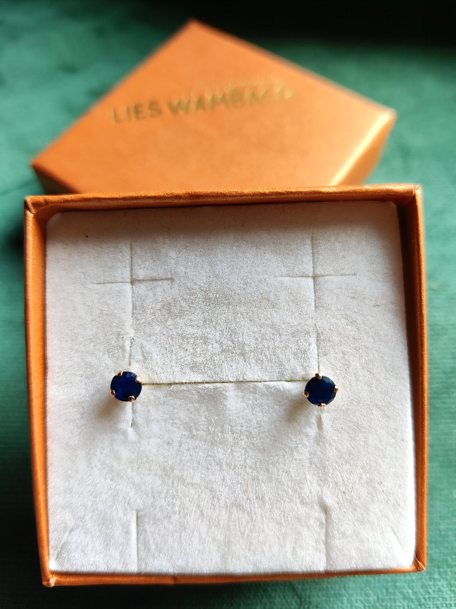 Oorsteker in 14k geel goud met ronde saffier van 4mm.
