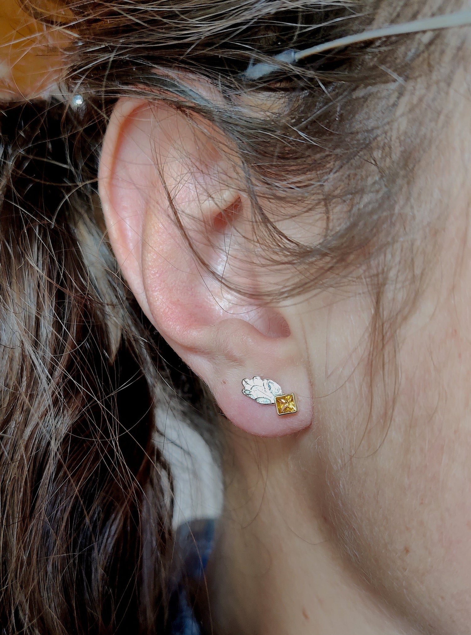 Oorbel in zilver en 14k geel goud met citrine : Nova