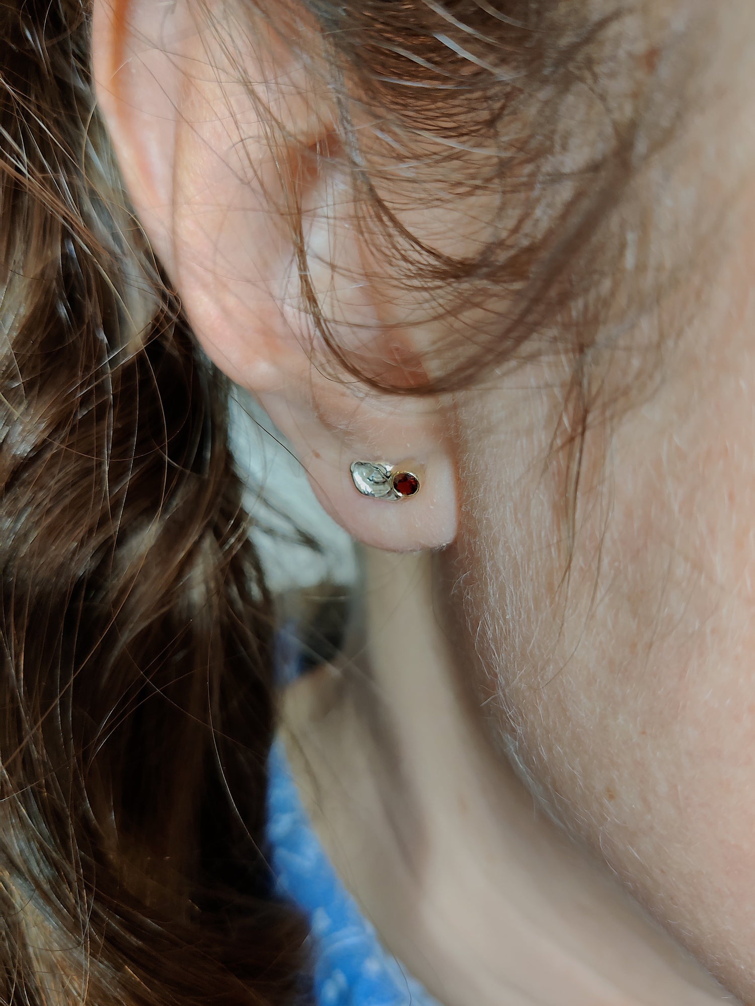 zilver en 14k geel goud oorsteker met rode granaat 2,8mm