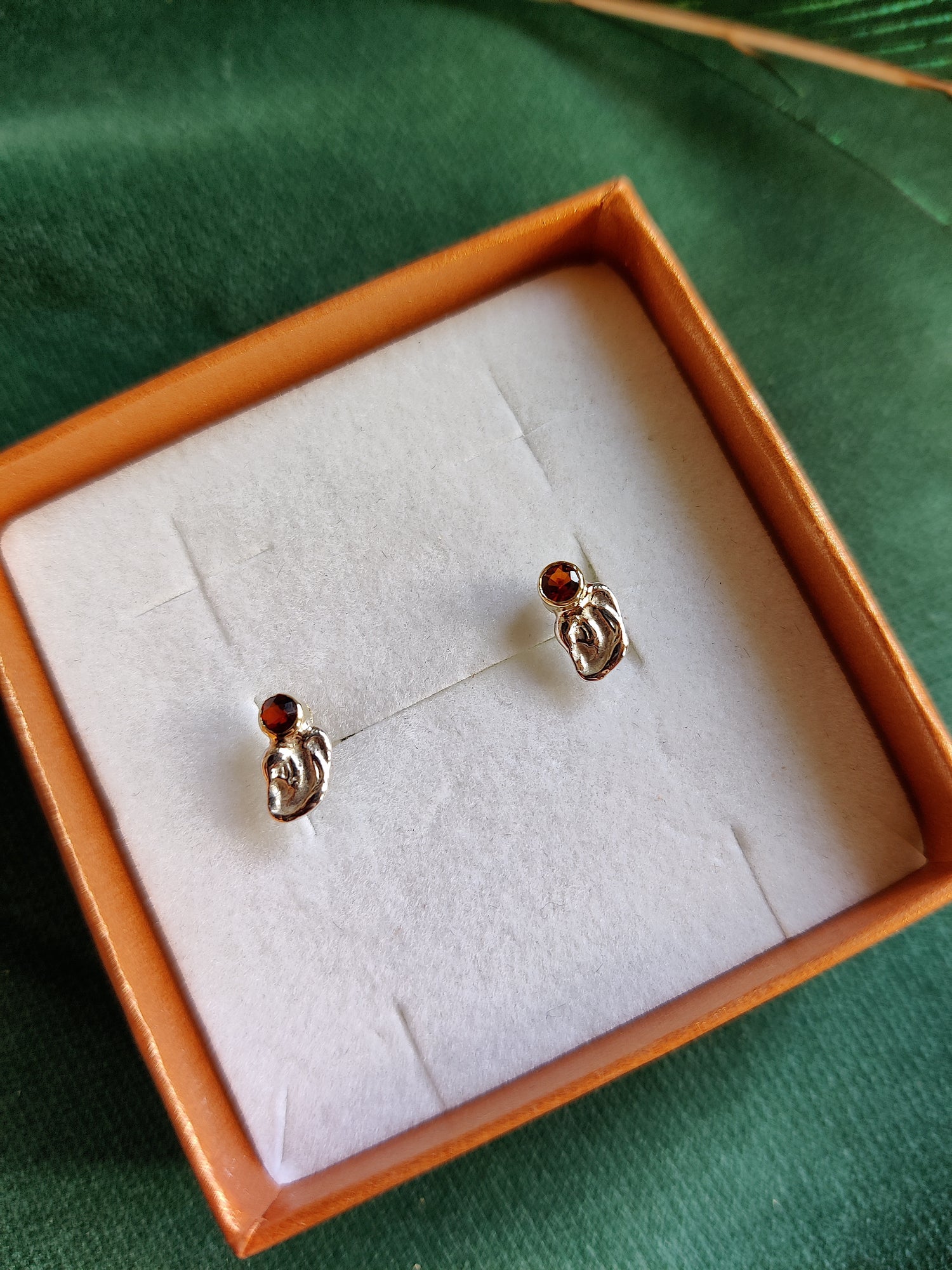 Oorbel in zilver en 14k geel goud met granaat : Amelia