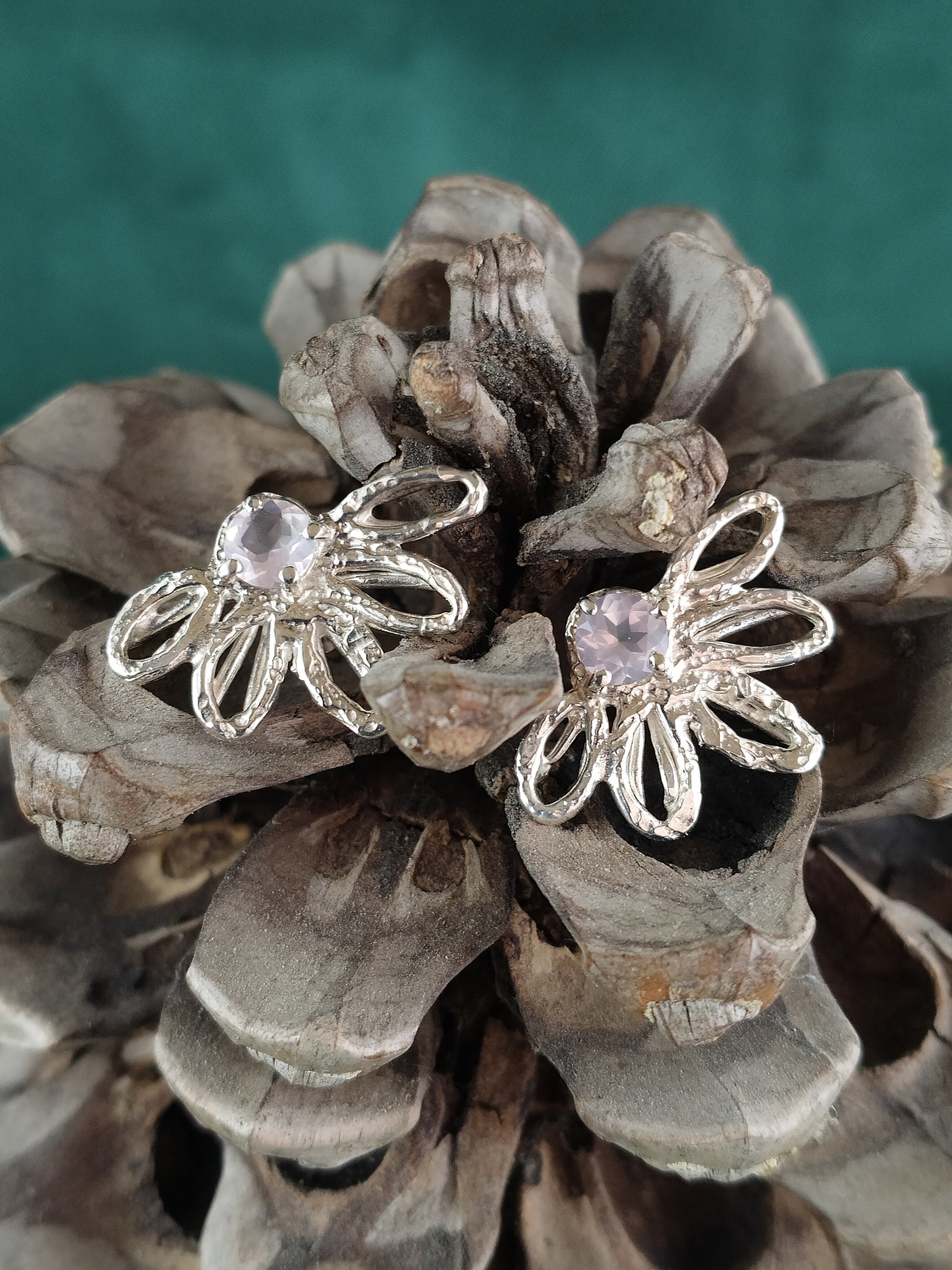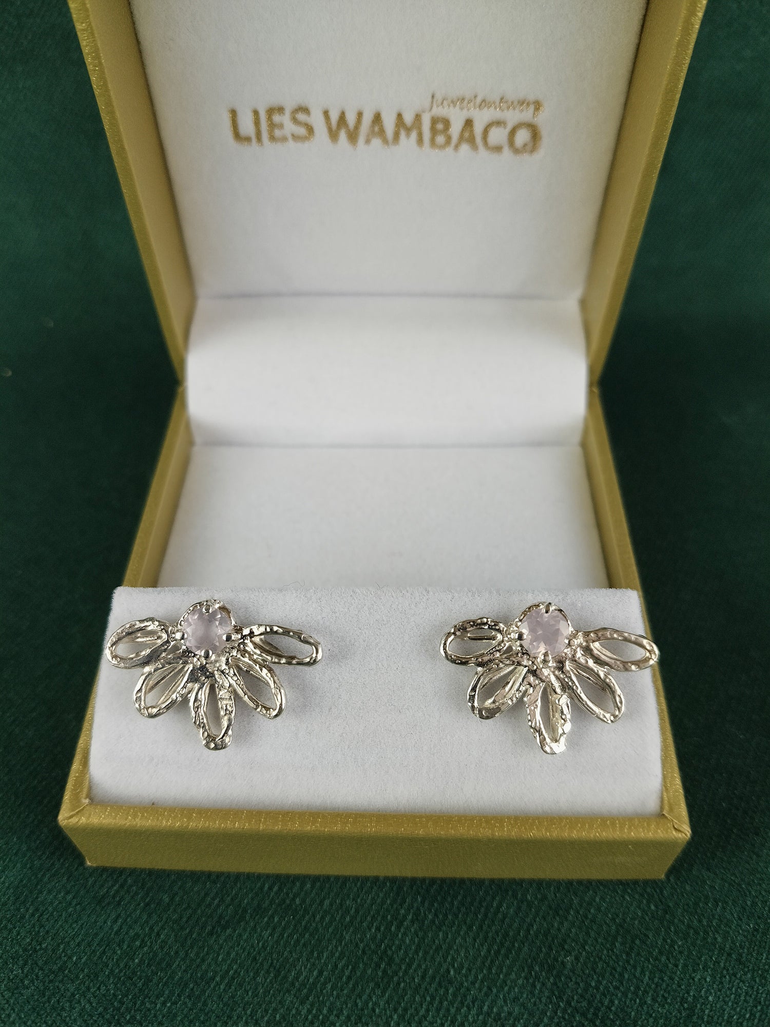 Oorbel in zilver met rozenkwarts: Yara