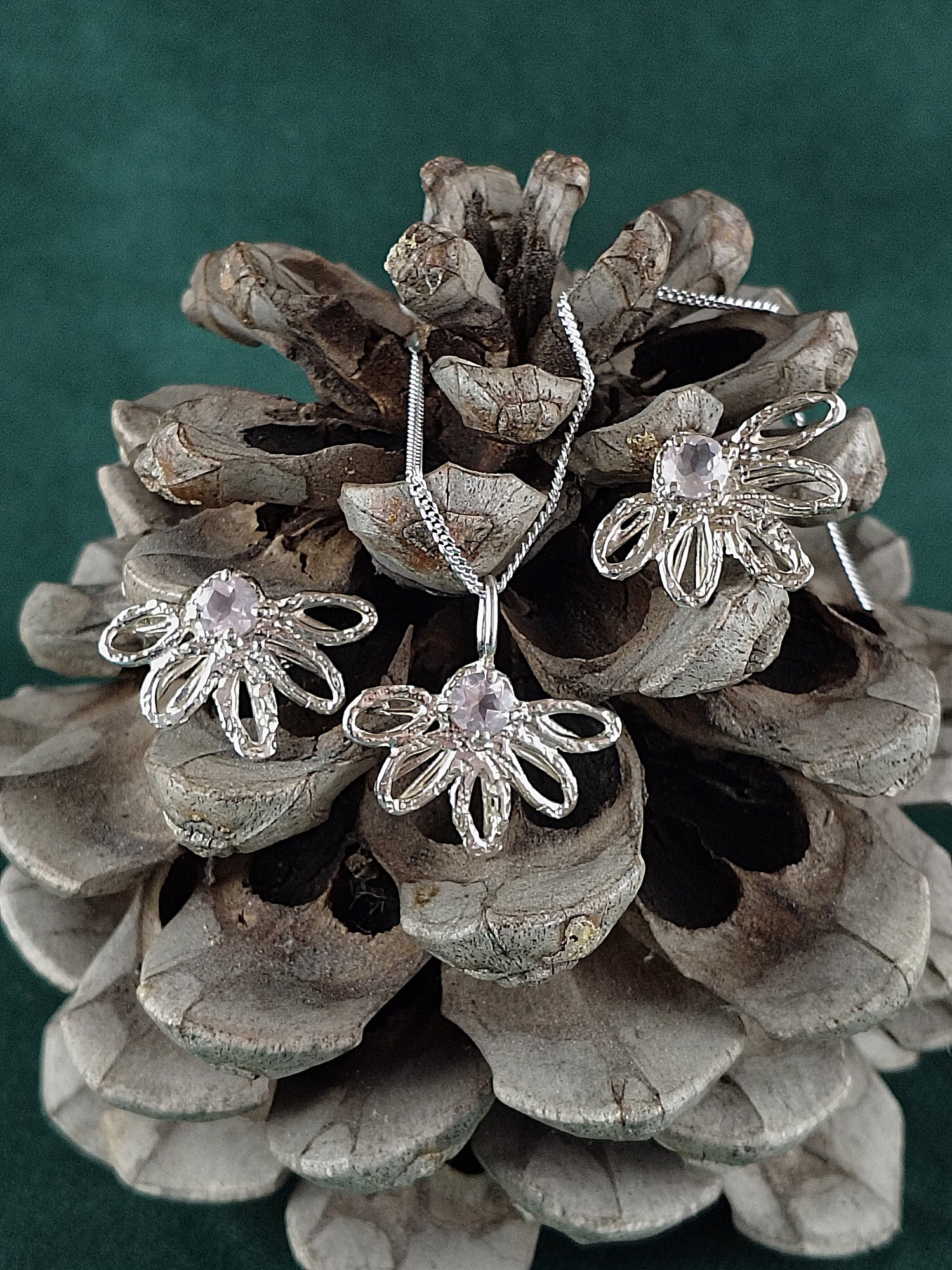 De oorbellen kunnen als set gedragen worden met de hanger Lina.