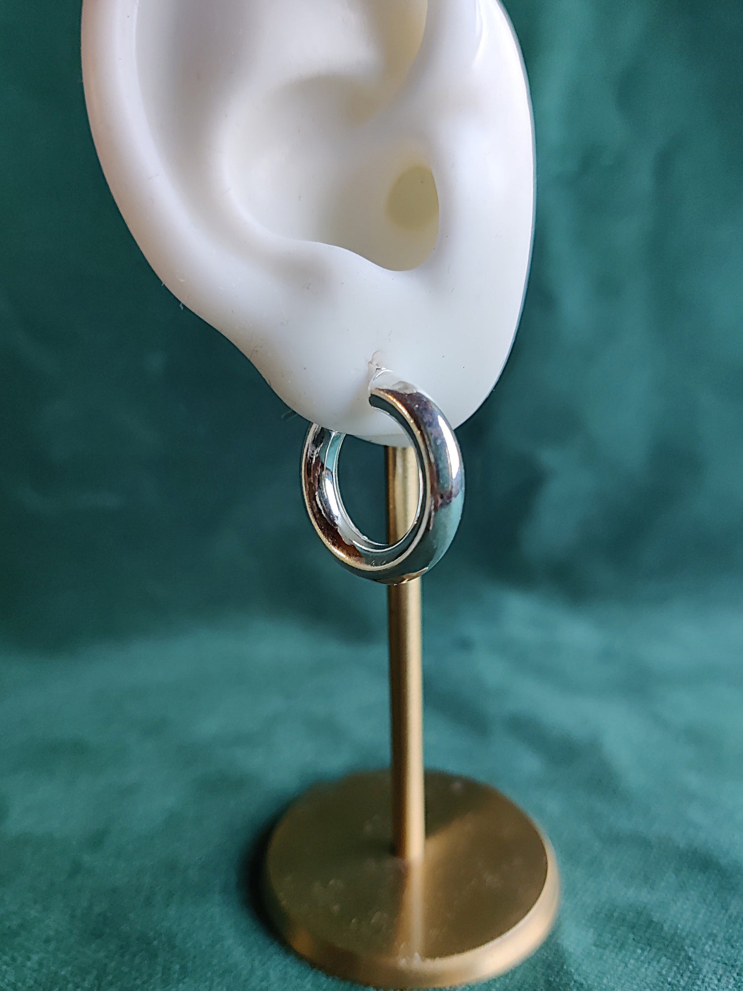 Zilveren oorbellen in 925 zilver met hefboomsluiting. Diameter: 2cm, breedte oorring: 0.4cm.