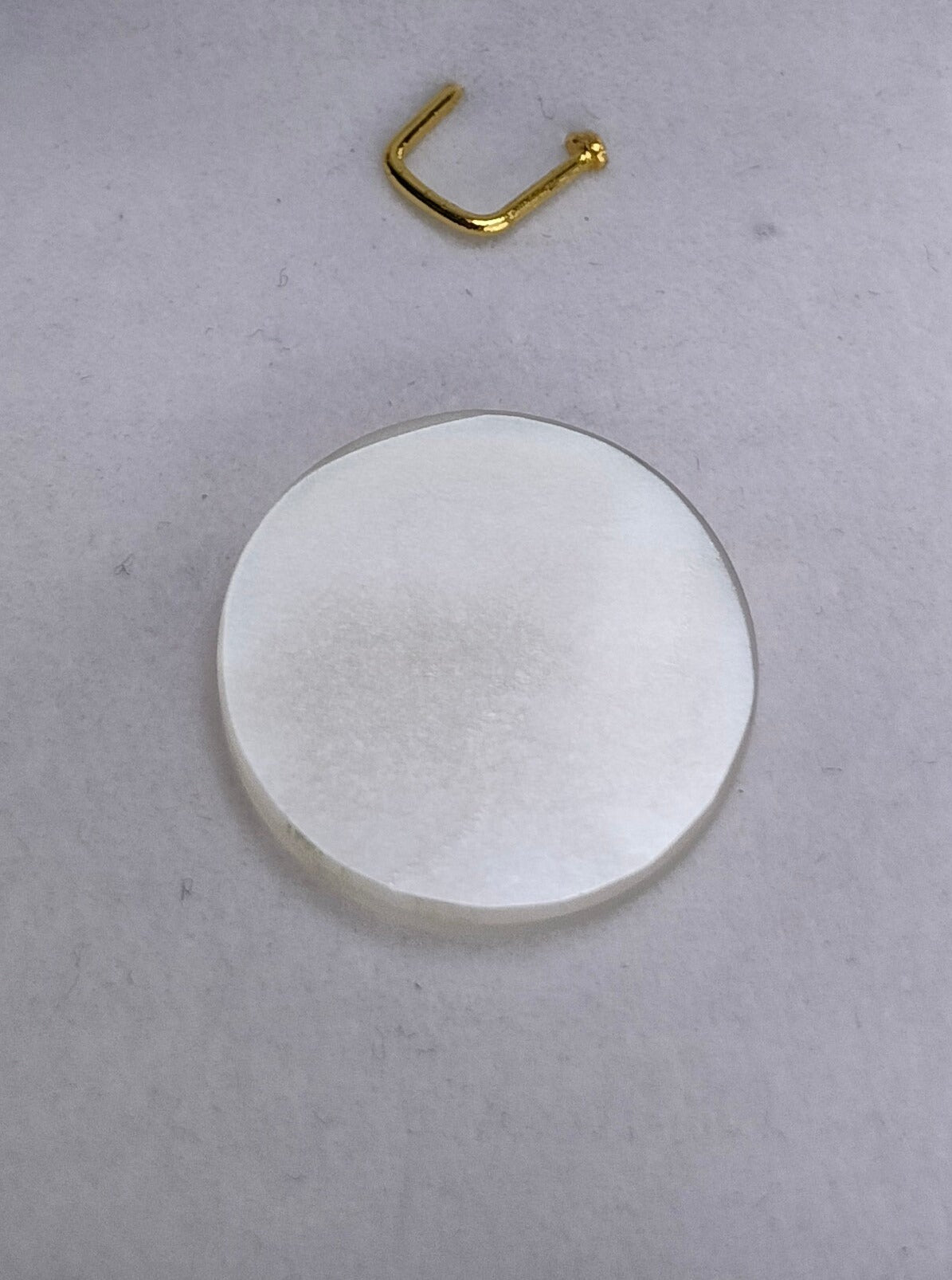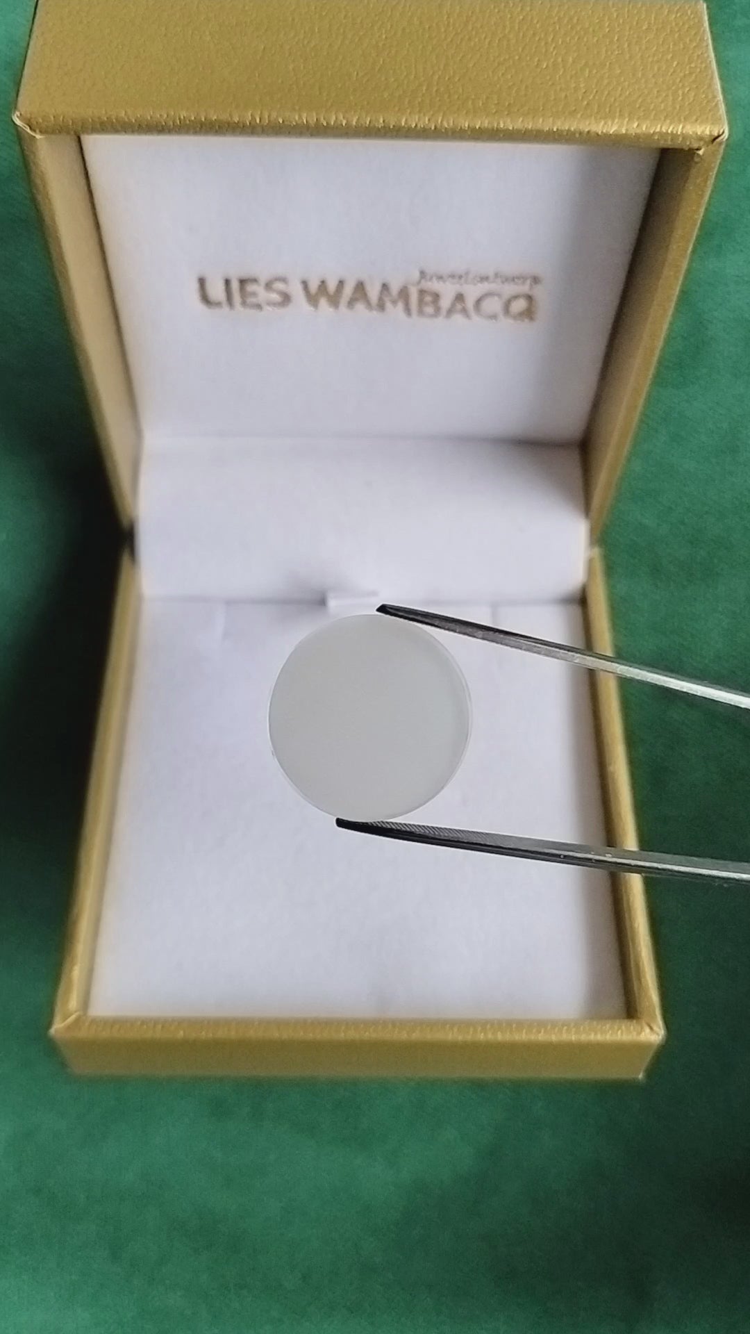 De steen is parelachtig wit, geel tot blauw met een parelmoerglans.