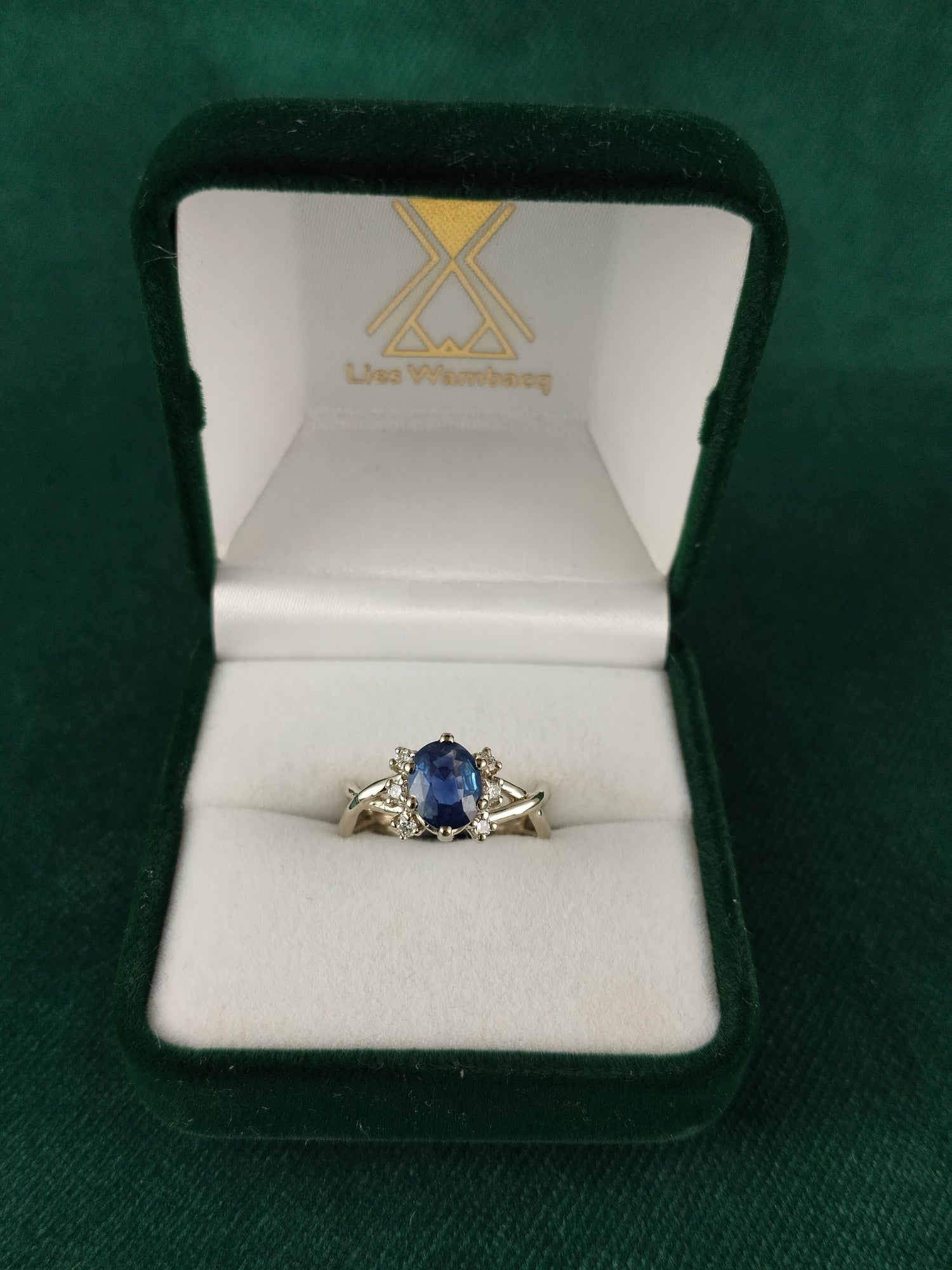 Ring 18K wit goud met Saffier en diamanten: Linnea