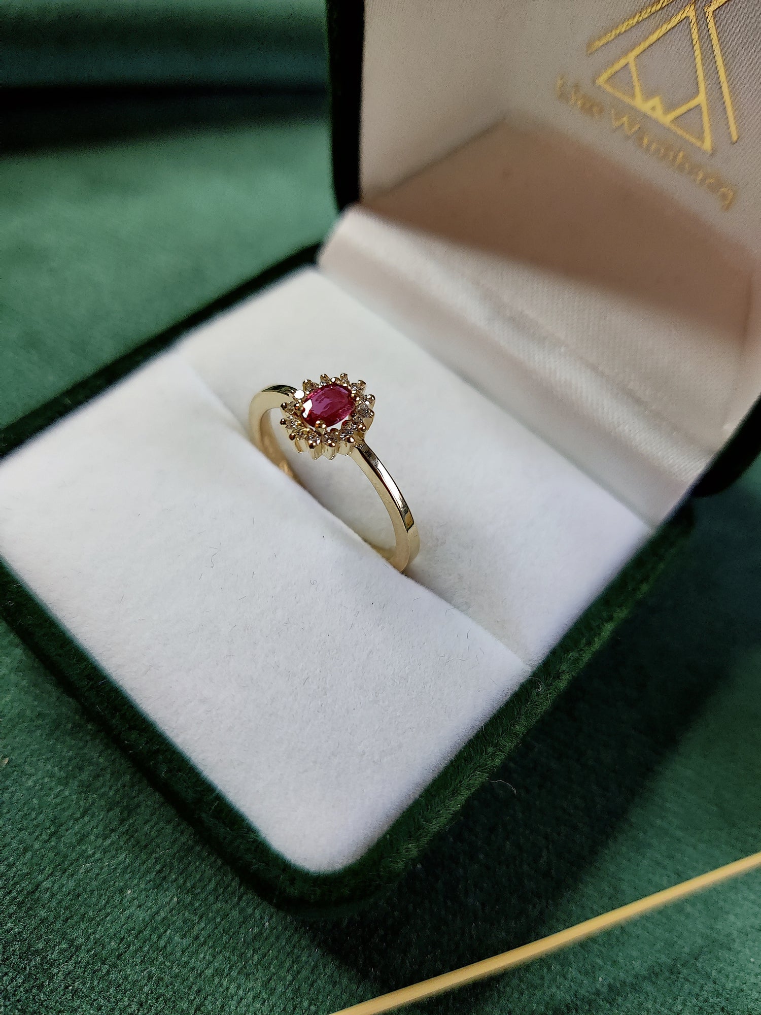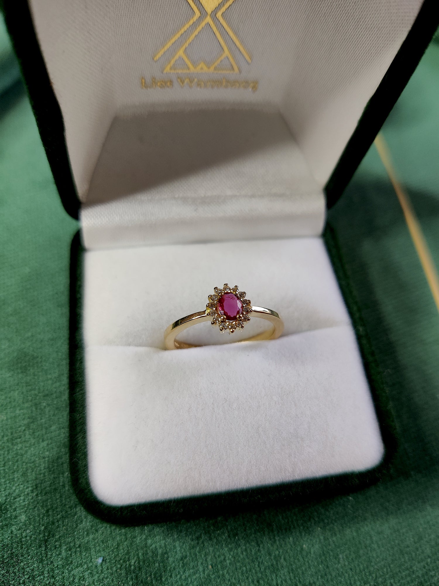 Ring in 18k geel goud met rhodoliet en diamant: op maat gemaakt