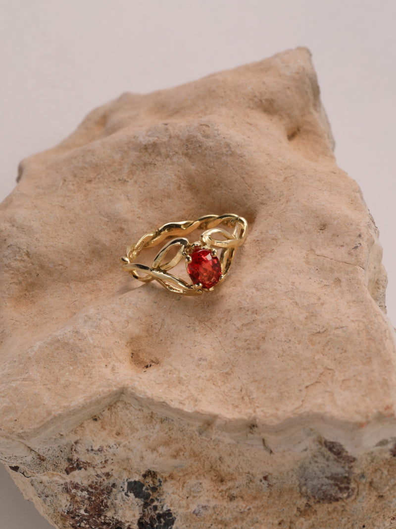 Ring in 18k geel goud met rode saffier - Cecilia