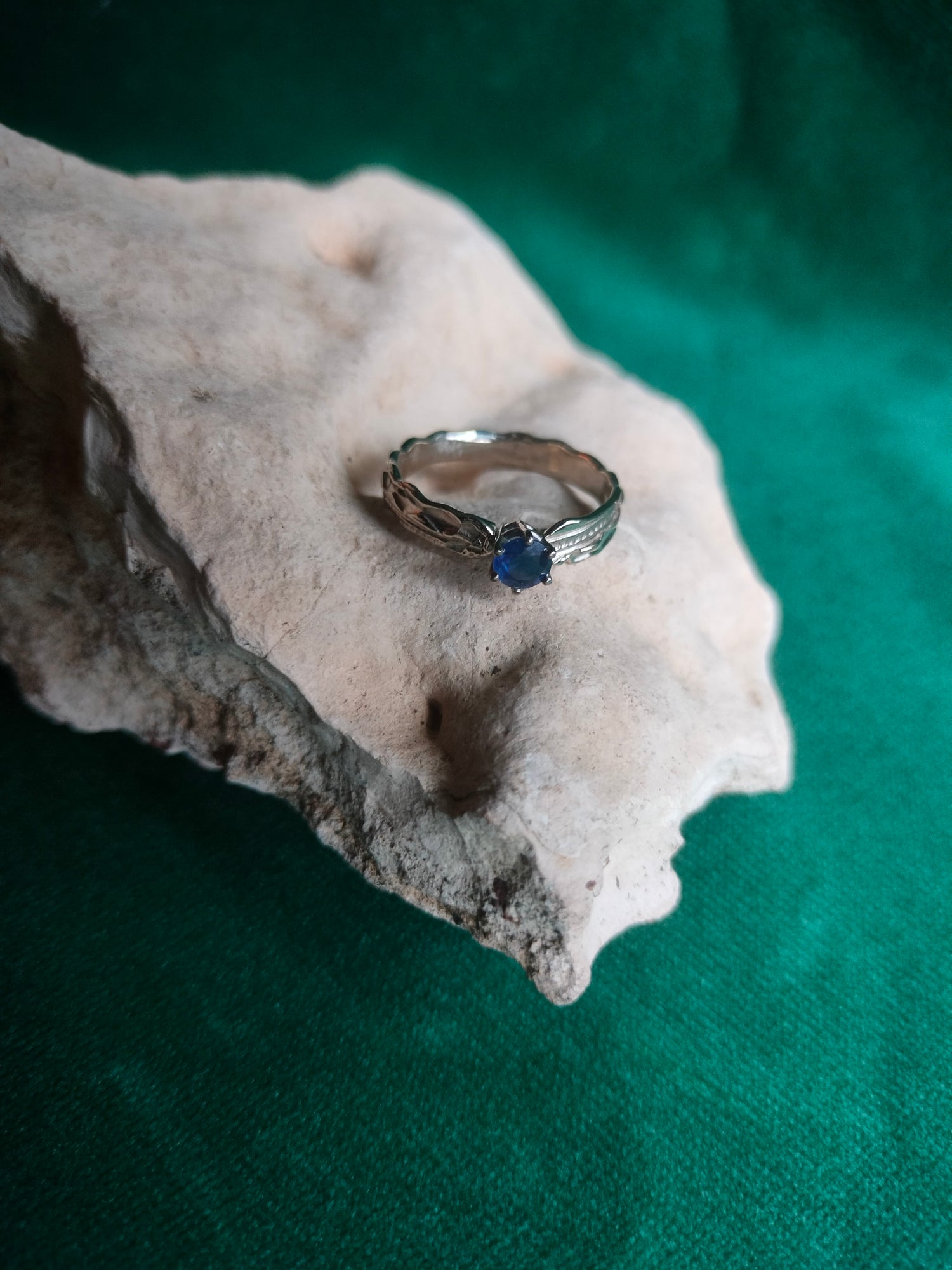 18k wit gouden ring met blauwe saffier 4,5mm (0,45ct).