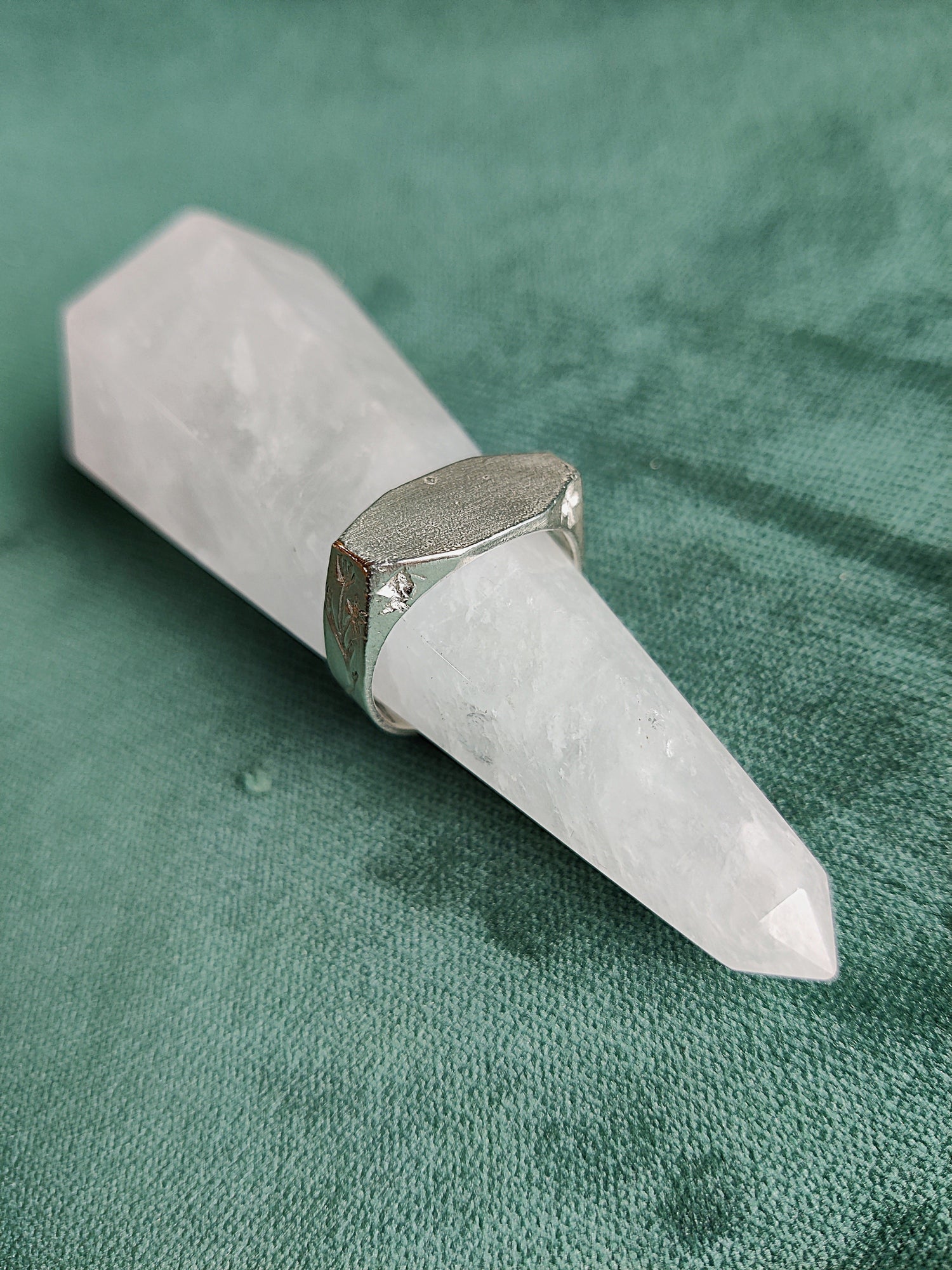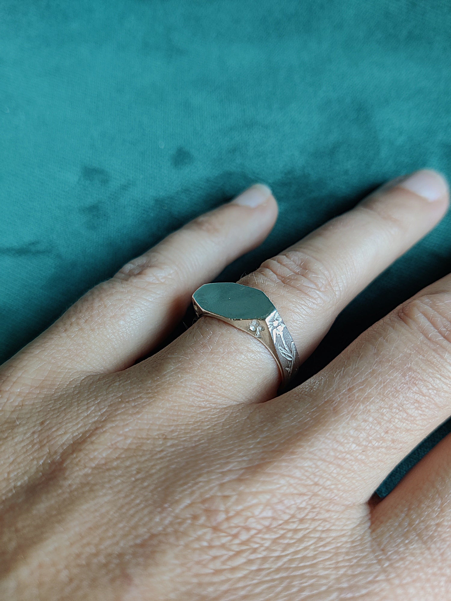 Het is een zegelring in zilver die zowel door dames als heren kan gedragen worden.