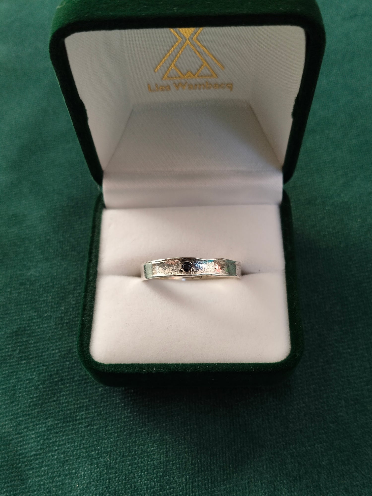 De ring is nu maat 59 maar kan op maat worden gemaakt. Dit duurt maximum 2 weken. Heb je vragen over je ringmaat, gelieve me dan te contacteren.