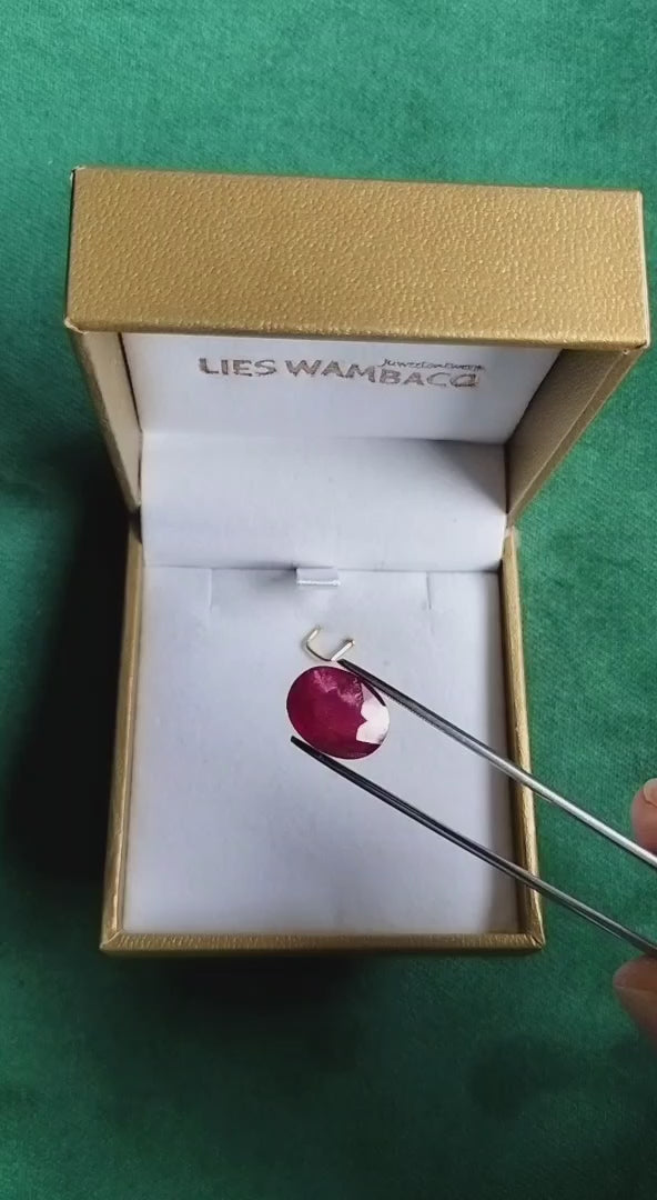 Robijn (behandeld): 13x10mm, 6,3ct.