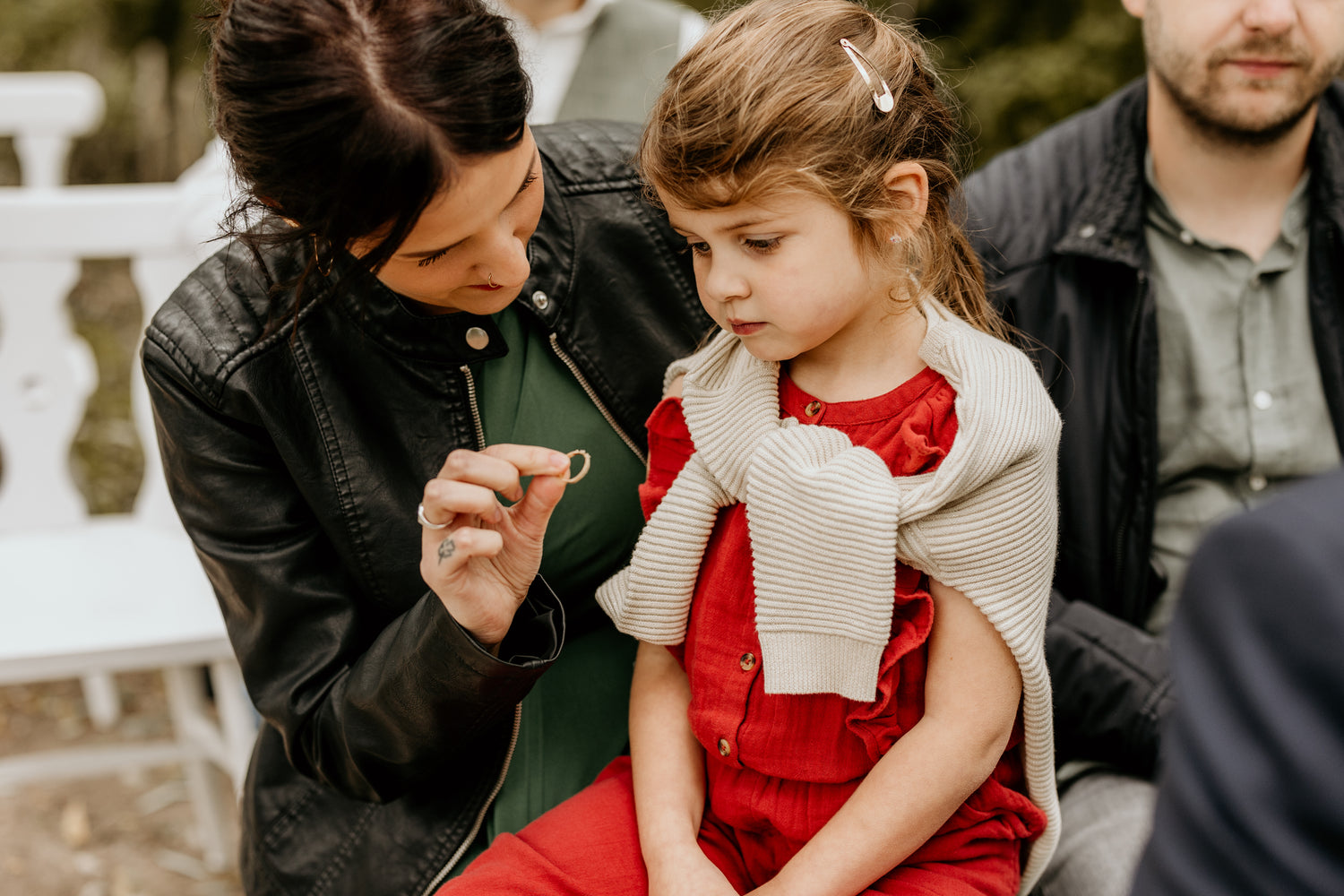 Tijdens de ceremonie lieten ze de ringen door alle aanwezigen hun handen gaan. Zij mochten daar een boodschap in fluisteren.