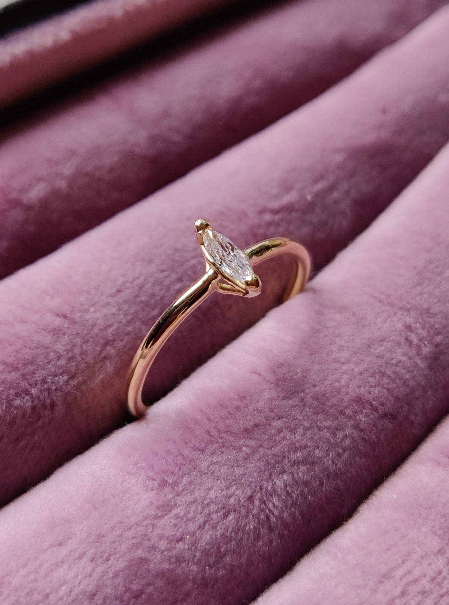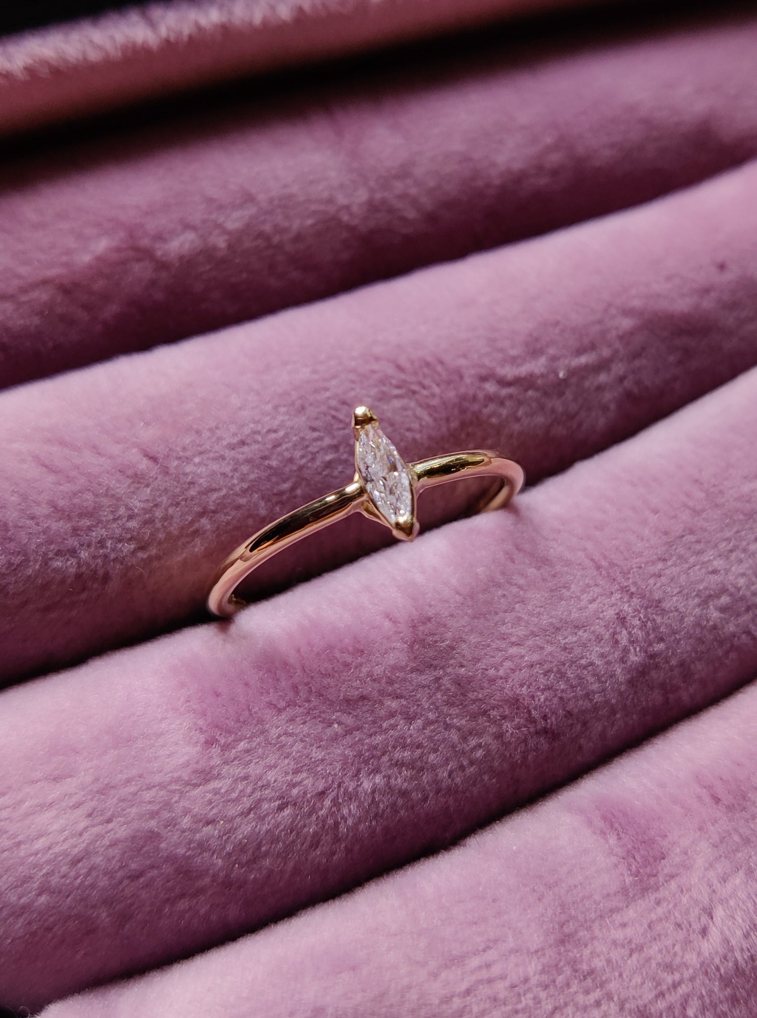 Verlovingsring in 18k geel goud met markies diamant: op maat gemaakt