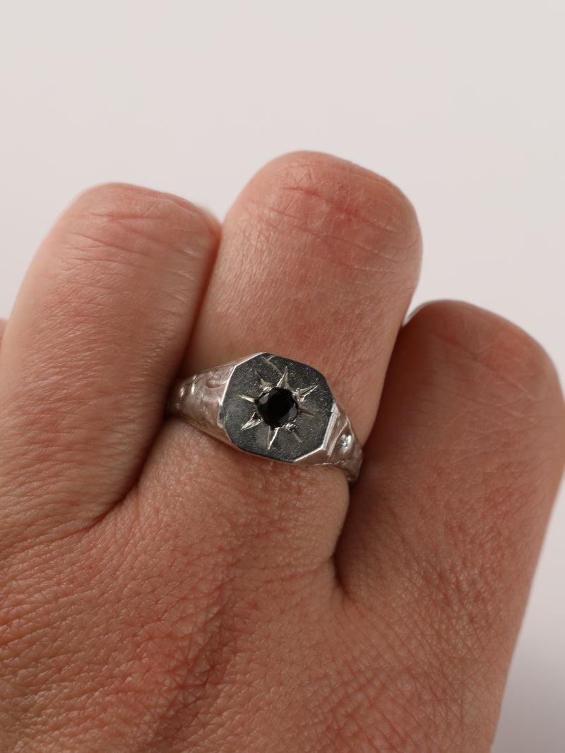 Het is een zegelring in zilver die zowel door dames als heren kan gedragen worden.