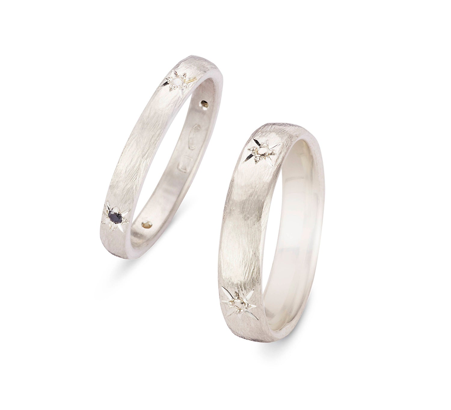 De ring heeft een uniek lijnen patroon dat bij elke ring uniek is, want dit wordt steeds met de hand erin gegraveerd. De ring is uit één geheel opgebouwd. Hij heeft nergens een soldeer naad.